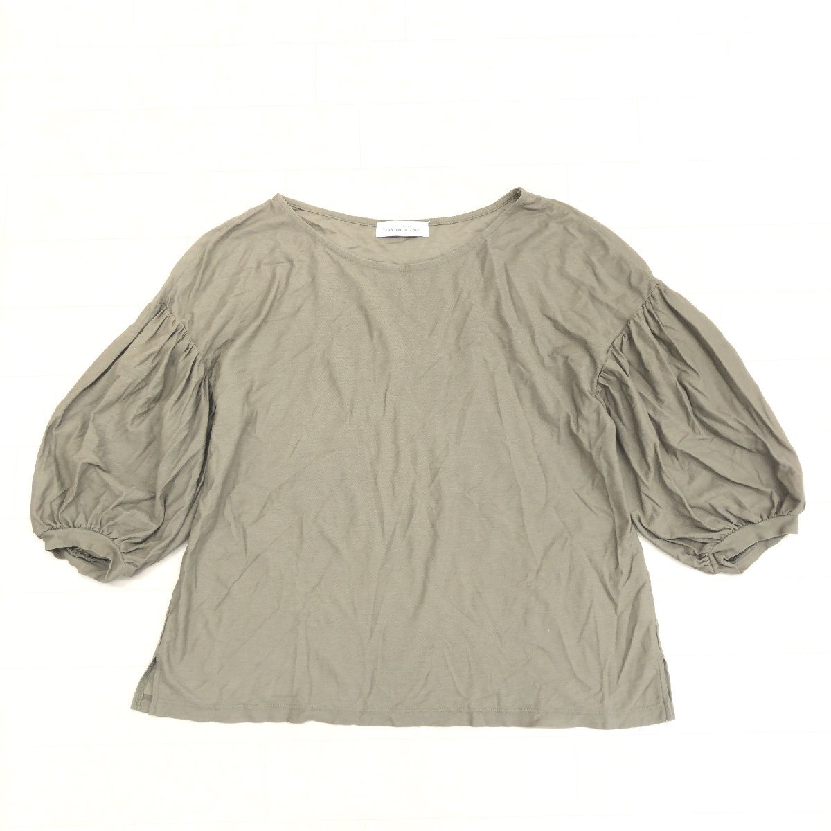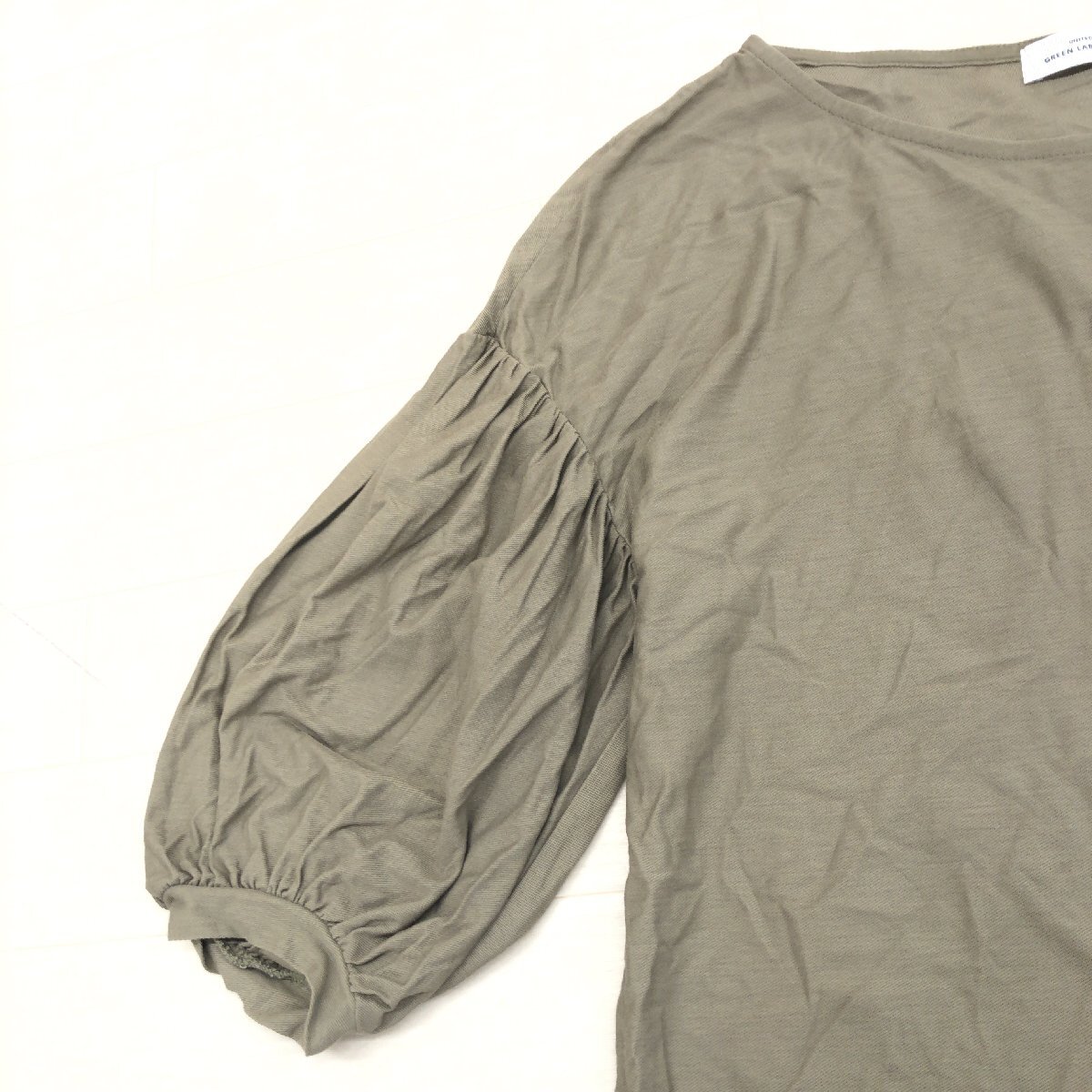 UNITED ARROWS GLR ユナイテッドアローズ 定価6,490円 ツイル ボリュームパフスリーブ カットソー F カーキ オリーブ 日本製 ロンT Tシャツ