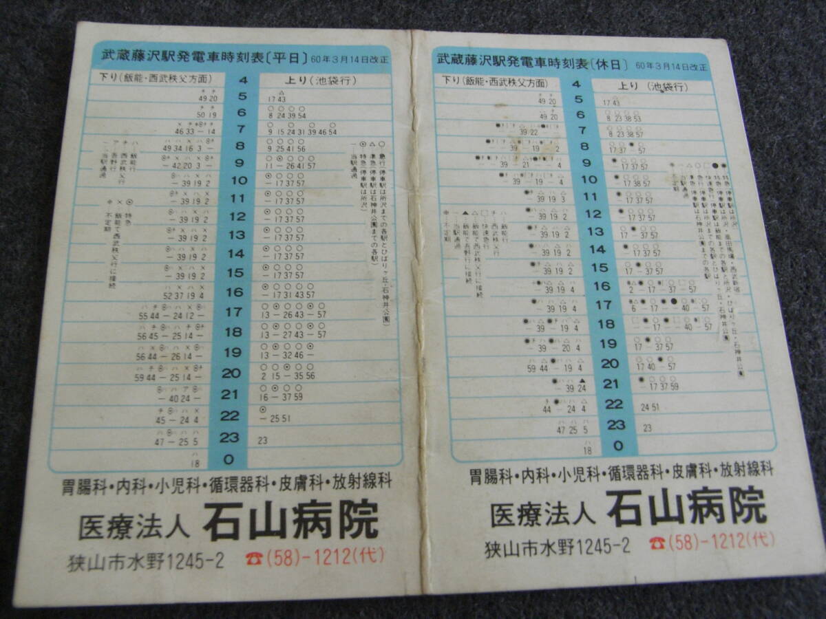 西武池袋線 武蔵藤沢駅/西武新宿線 入曽駅発電車時刻表/西武池袋線 池袋駅 昭和60年3月14日改正 西武鉄道時刻表