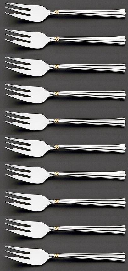 ☆ラッキーウッドエメラルド金彩ケーキフォーク10本高級18-10ステンレス使用ミラー金彩仕上げ日本製新品