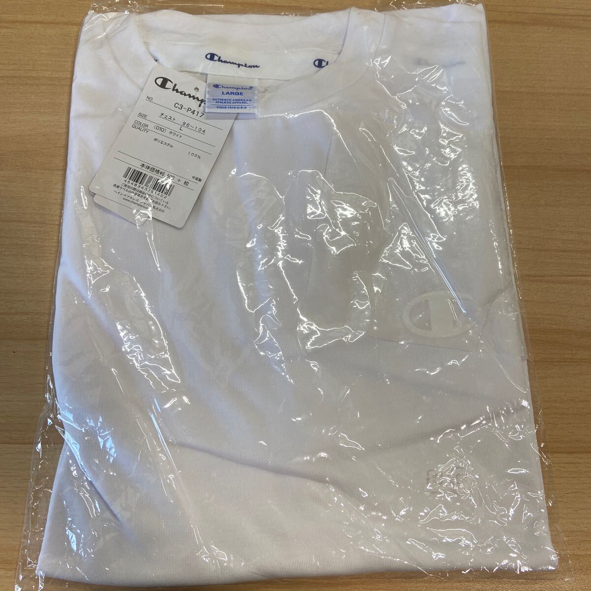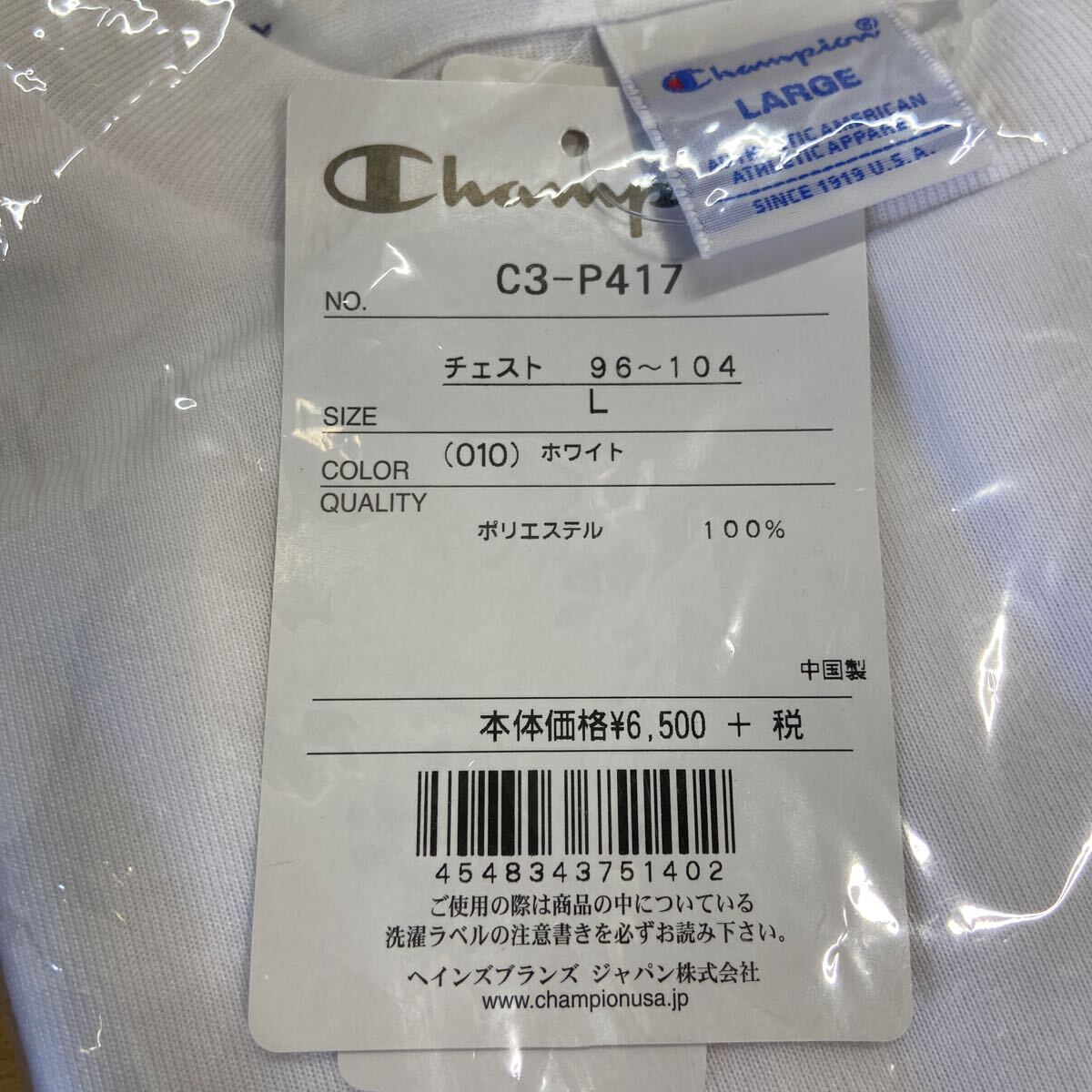 未使用 チャンピオン Champion ロングTシャツ 長袖Tシャツ クリアジェルプリント ワンポイントロゴ C3-P417 メンズ ホワイト L(10-2)③