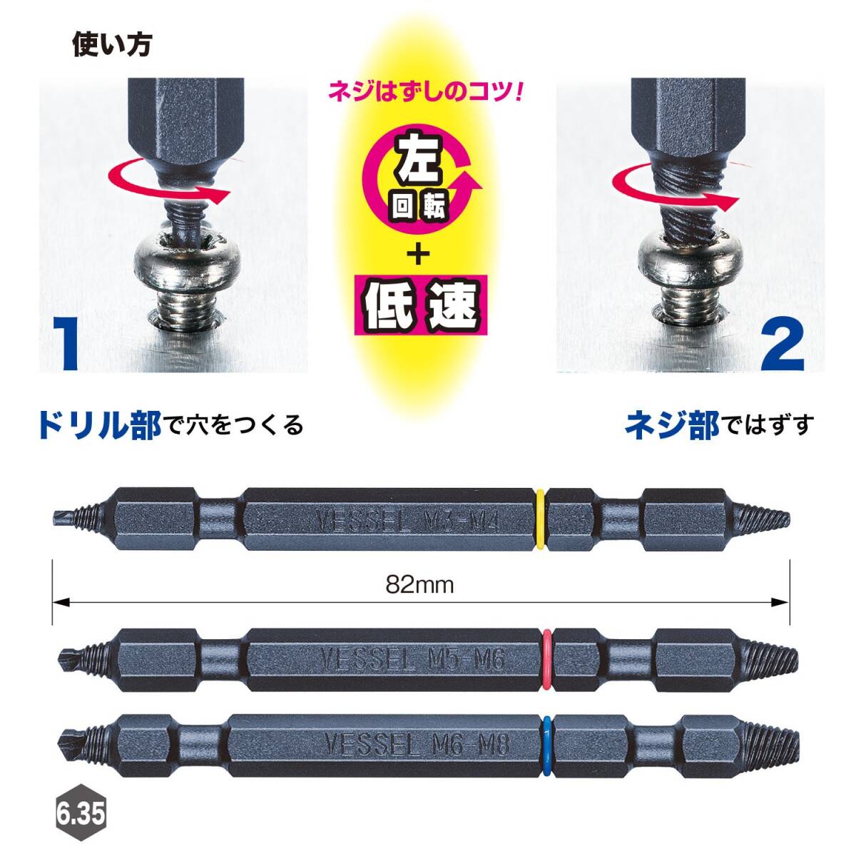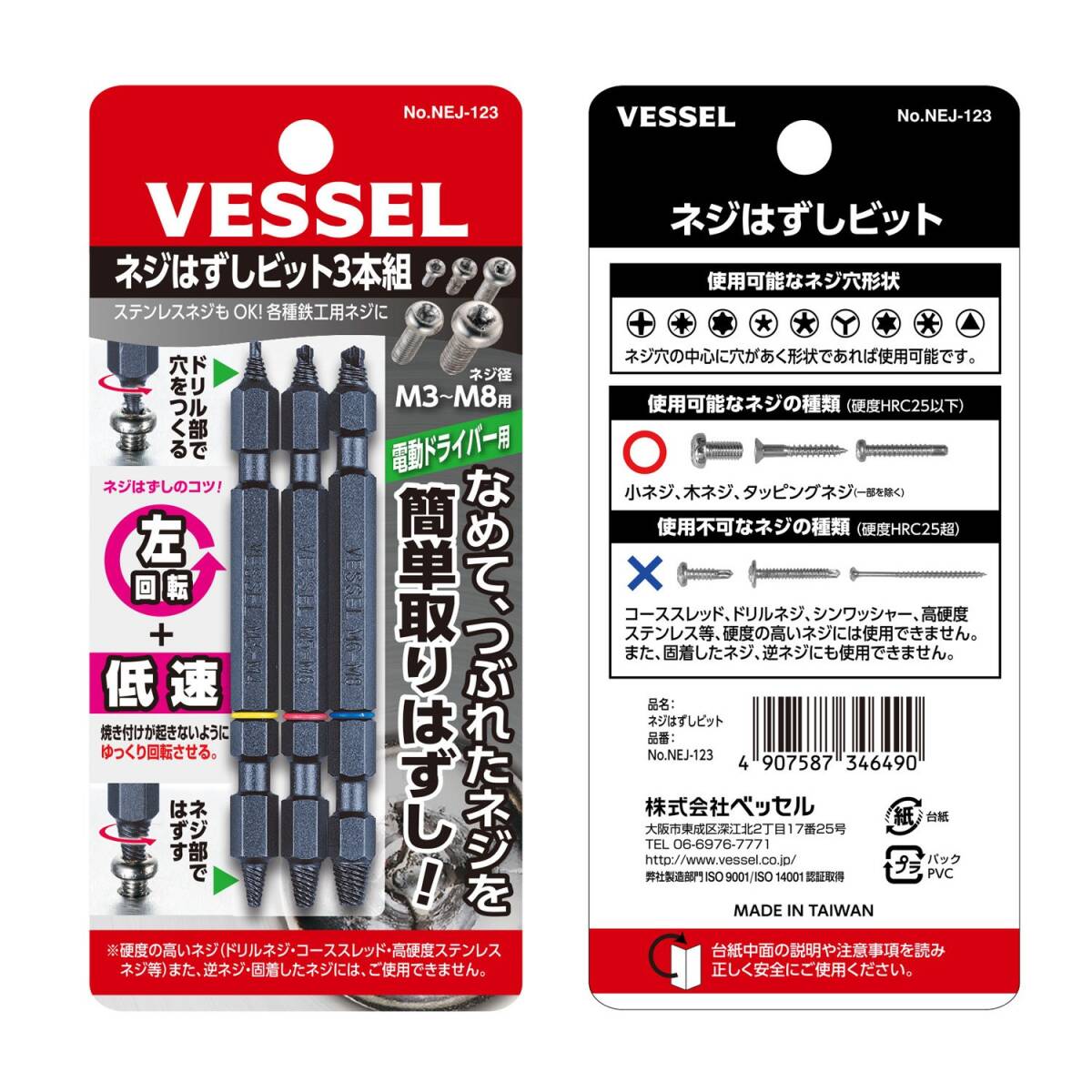 ベッセル(VESSEL)ネジはずしビット3本組 なめたネジ つぶれたネジM3~M8用 NEJ-123