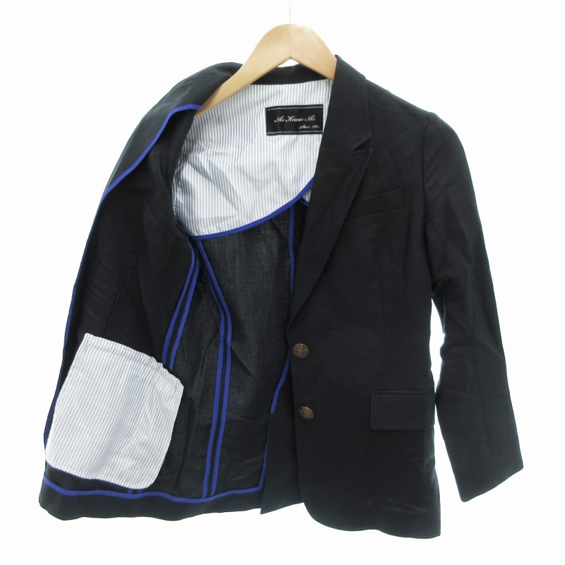 アズノウアズ as know as テーラードジャケット ブレザー 背抜き 2B ロゴ ボタン 麻 リネン 黒 ブラック /HO レディース