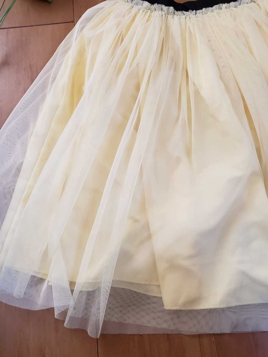 ◎一度着用しております。使用感ほとんどありませんが後ろのチュール部分に少し黒い汚れがあります。(写真参照)ふんわりしているので目立たないです。洗濯タグがチュールと下の生地の間にあるのが気になり取ってしまってます。ブランドタグはそのままです。あくまで自宅保管のため細かいことが気になる方はご遠慮ください。ノークレームノーリターンでお願いします。