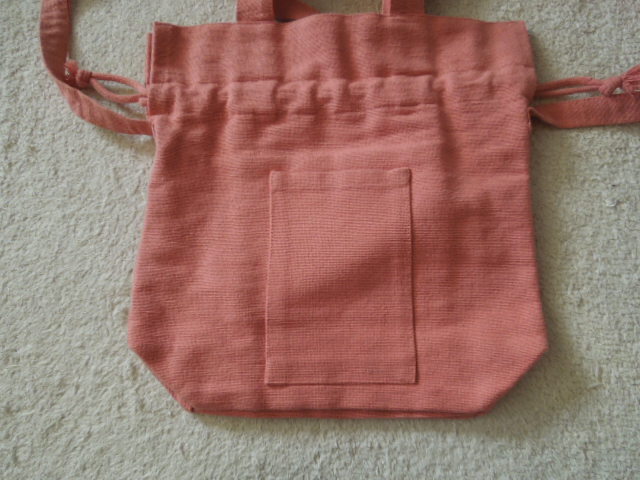 巾着ショルダーバック!くすんだサーモンピンク系・未使用