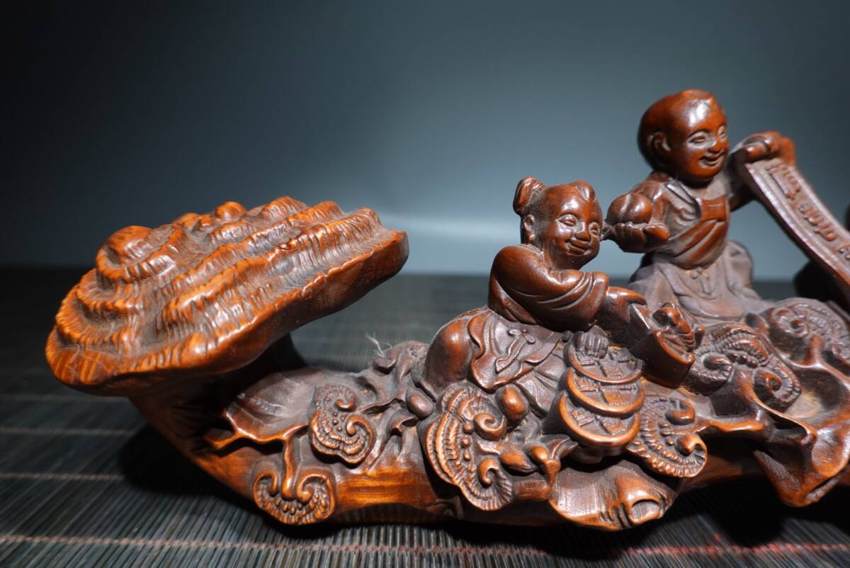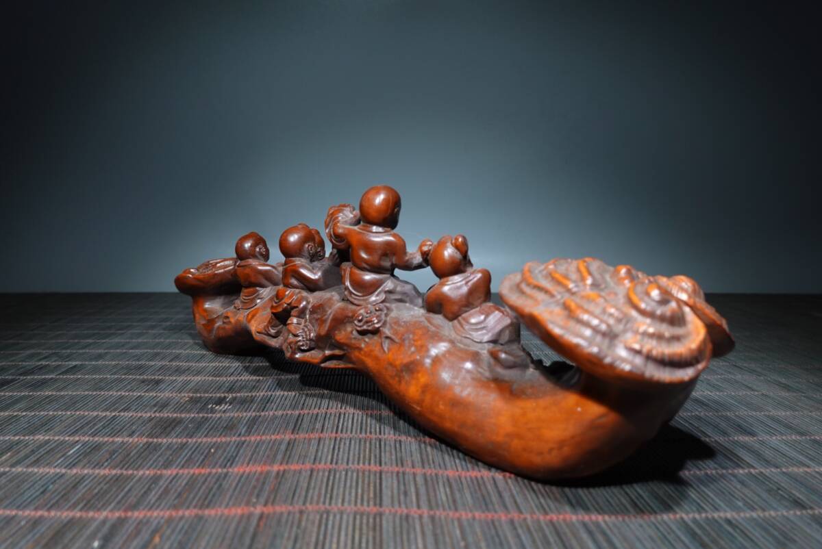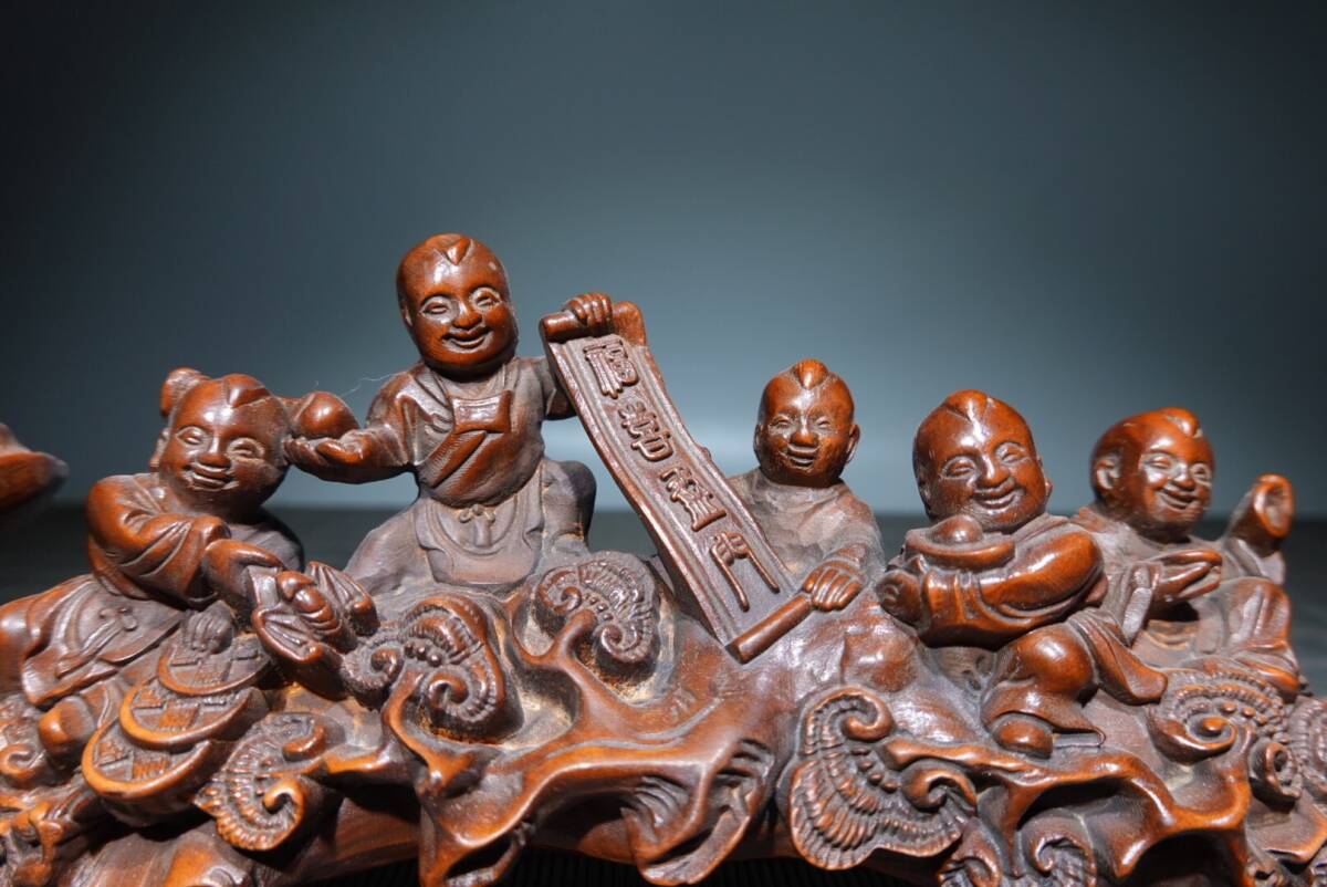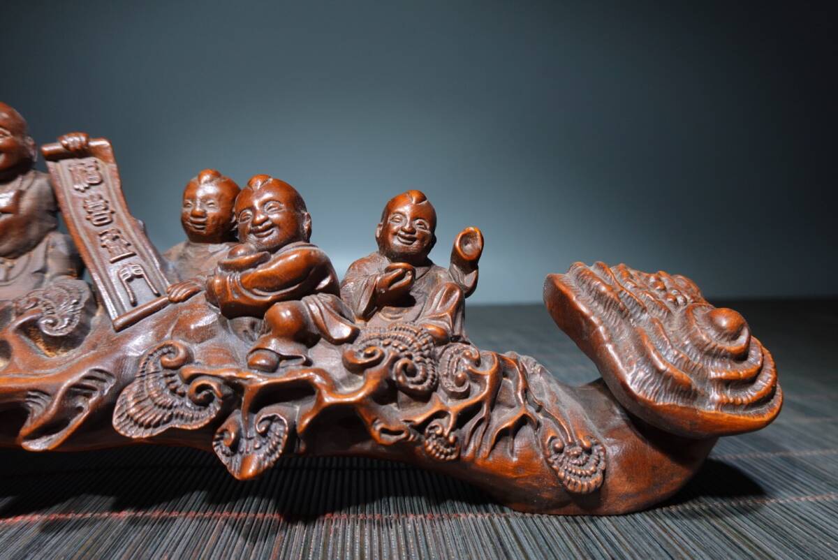 【超珍館蔵】黄楊木製 細密彫 五福臨門如意 置物 賞物 古賞物 古美術品 稀少珍蔵品