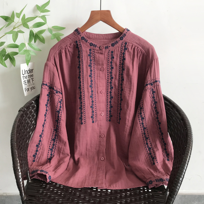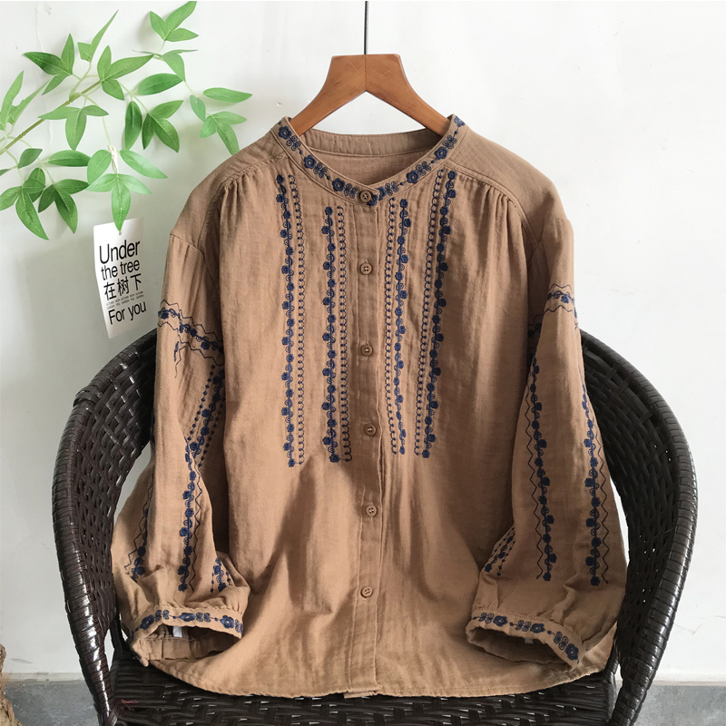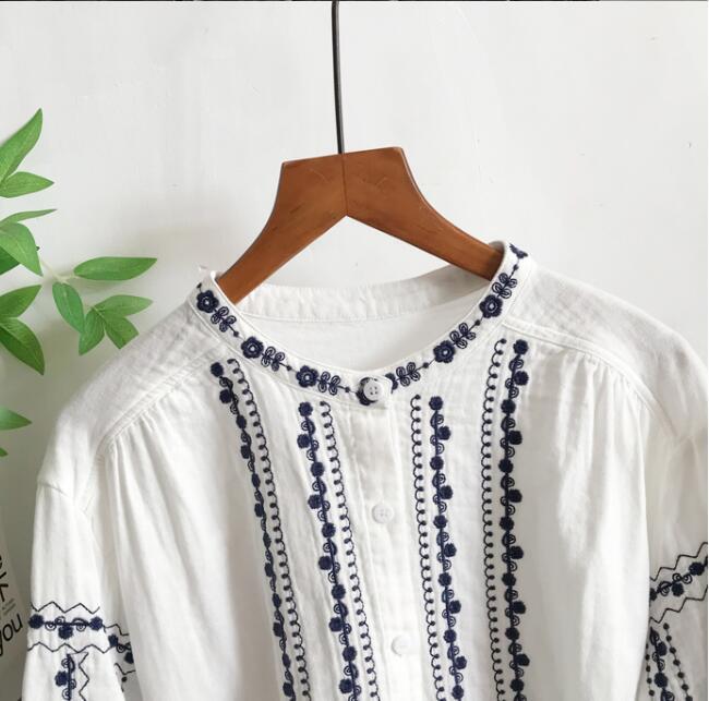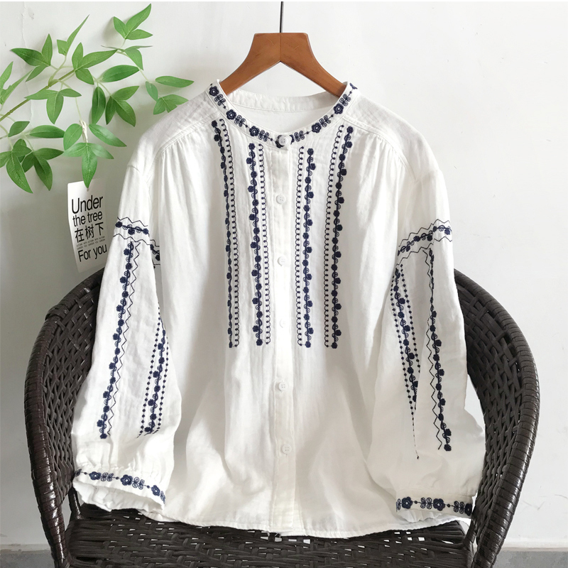 新入荷上質 ダブルガーゼ 刺花柄 フリーサイズ ワイシャツ チュニック トップス 綿100% 大人可愛 ナチュラル ホワイトお色選択可