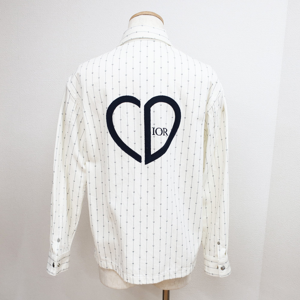 【天白】ディオール ジップ ジャケット 213D486A5448 デニム ホワイト ハートロゴ 表記サイズ44 コットン アパレル 服