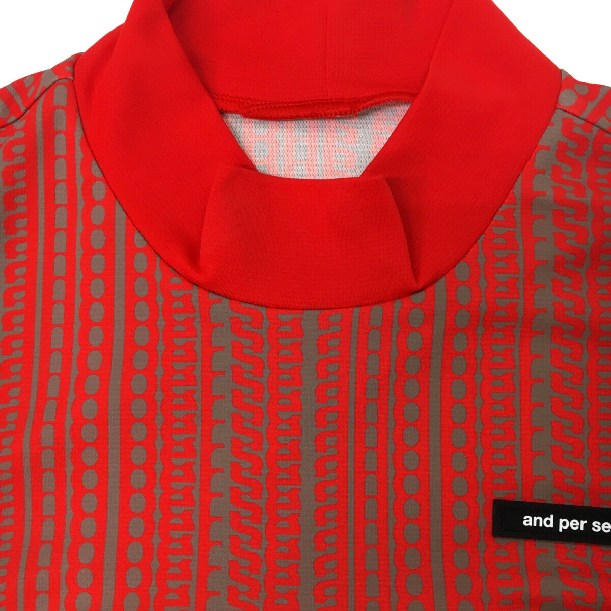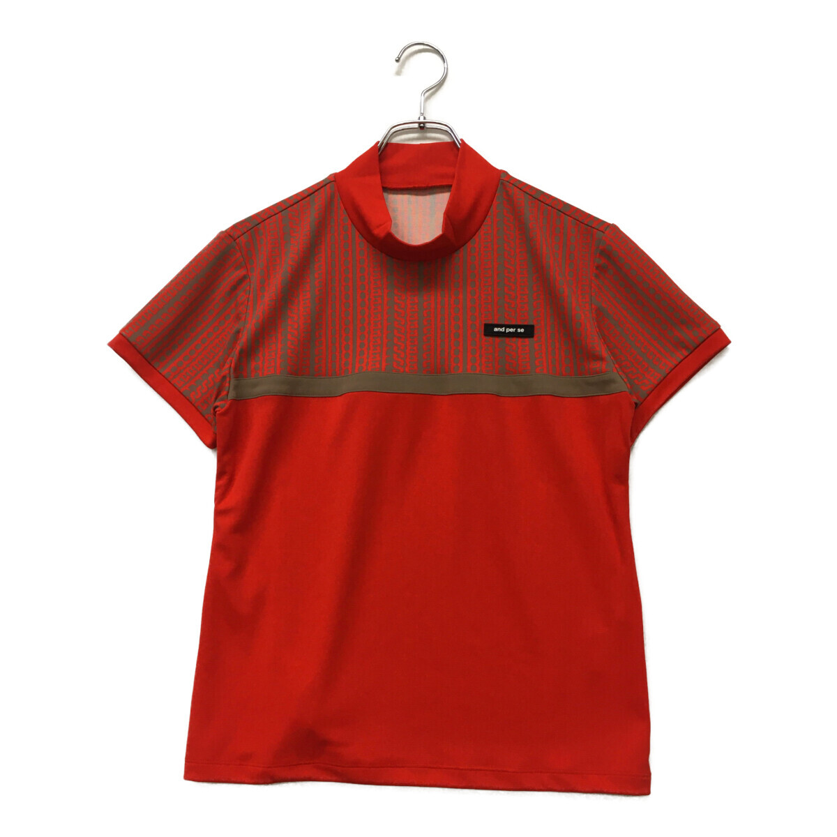 coco 未使用品【値下げ】 アンパスィand per se 半袖モックネックシャツ LL 赤 ハイネックストレッチレディース ネコパケ発送可 97046