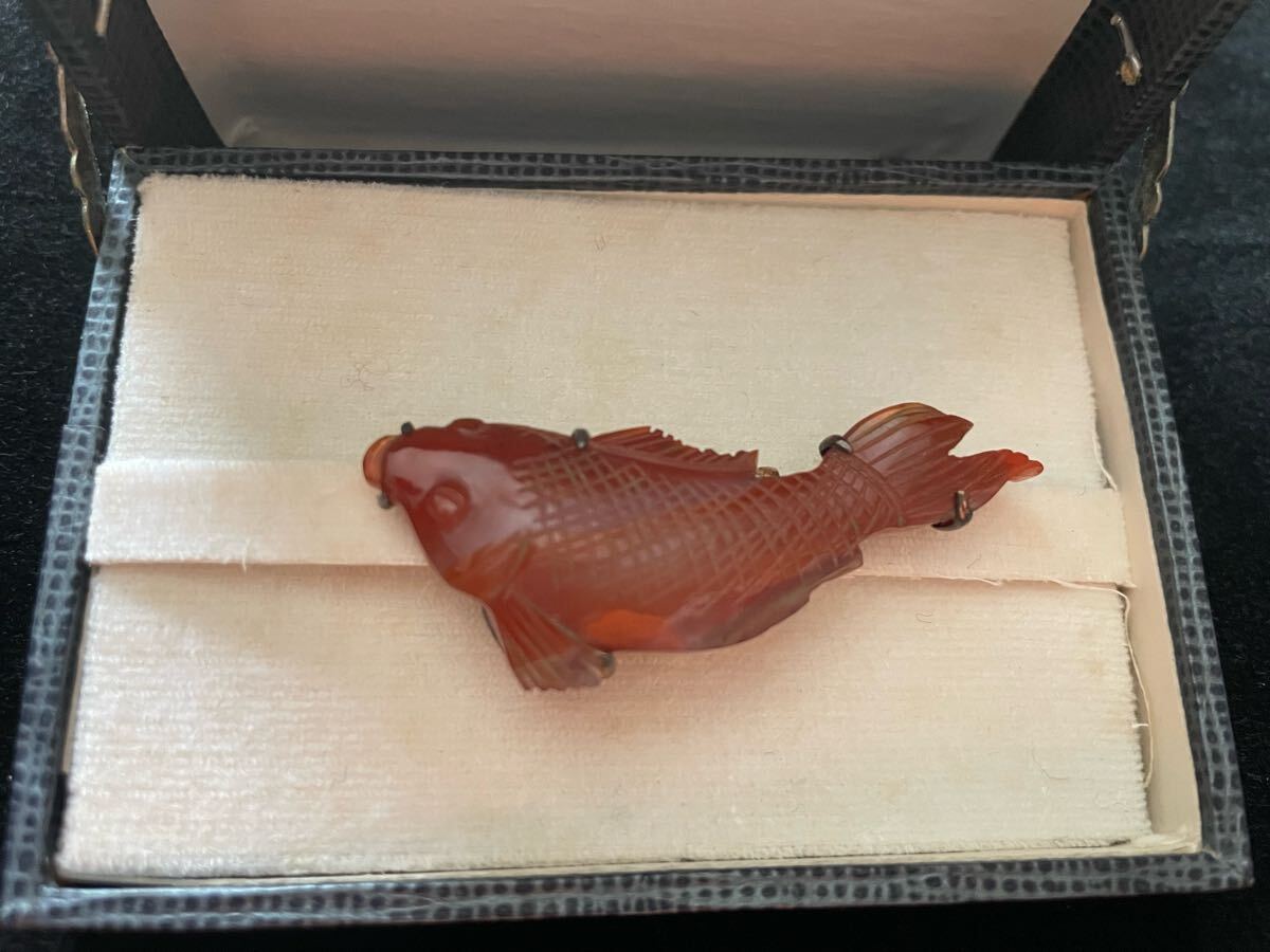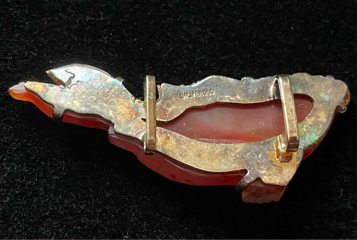 ・瑪瑙 鯉 帯留め シルバー950