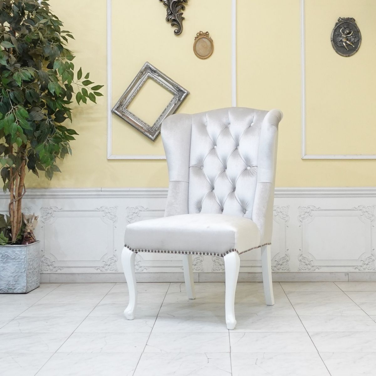 アウトレット チェア ダイニングチェア ウィングチェア ハイバックチェア 猫足 英国アンティーク調 白家具 z9013-18f220bサイズW 65cm x D 70cm x H 104(座まで49)cmコメントアウトレット理由・塗装のヒビや傷・生地の汚れ