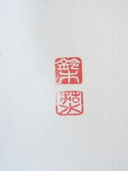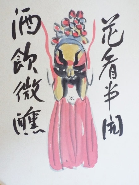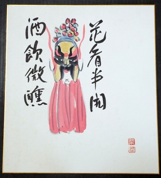 6839☆不明色紙・肉筆・中国面画賛・印章・共タトウ入・☆