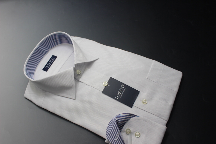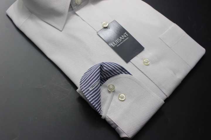 2枚セット【新品】LUISANT (山喜)ワイドカラー/ワイシャツ 長袖 /標準体/ 形態安定  M(39-82)  白綾織柄 UND101/018(7B004.037