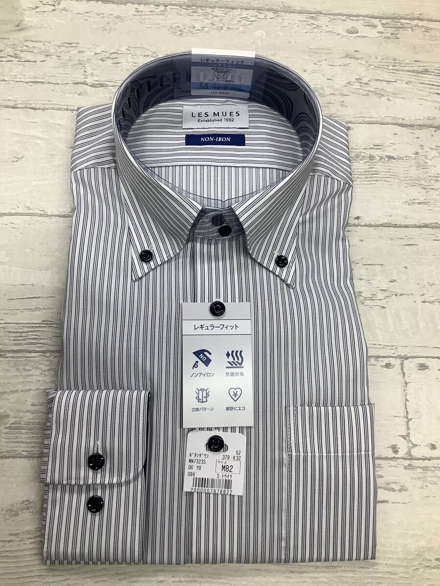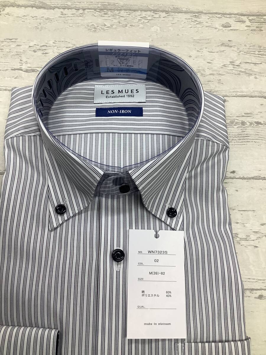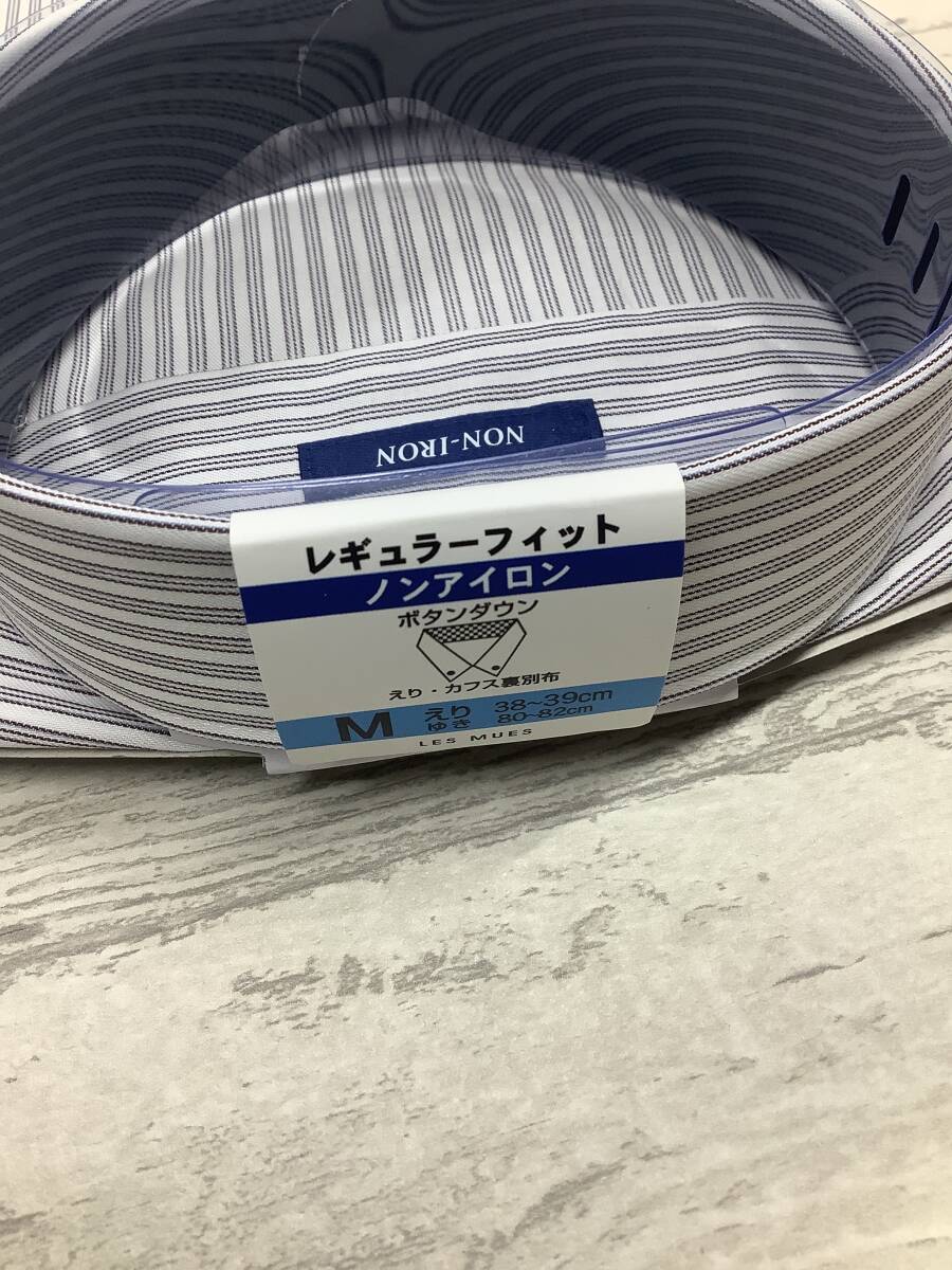 新品 39-82 長袖Mサイズ ボタンダウンカラー★ドレスシャツ 綿ポリノンアイロン ストライプ柄デュエボットーニ★