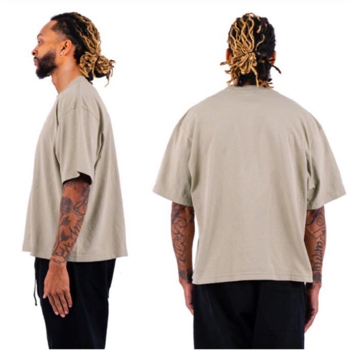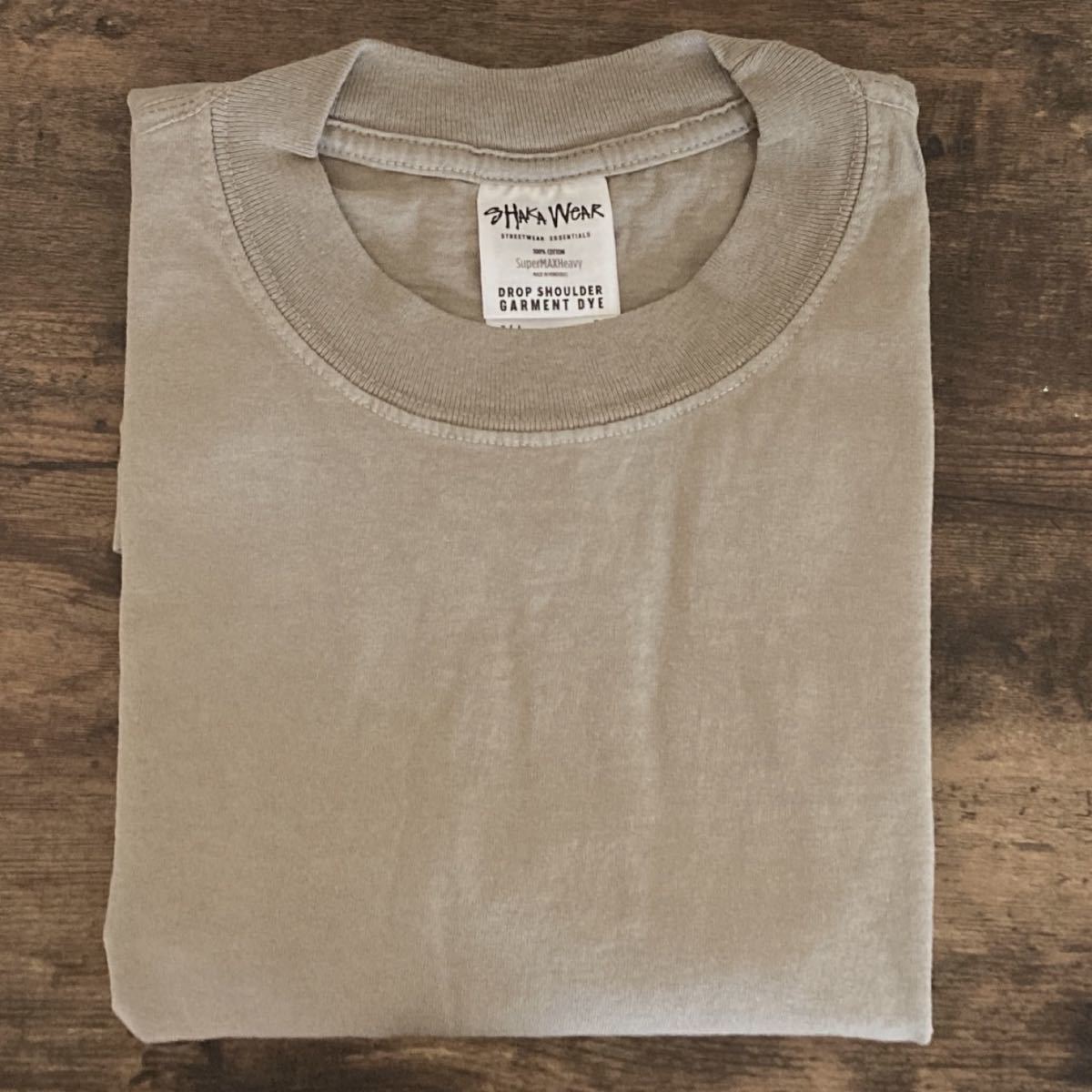 着丈に対して身幅にゆとりを持たせたドロップショルダータイプのTシャツ。