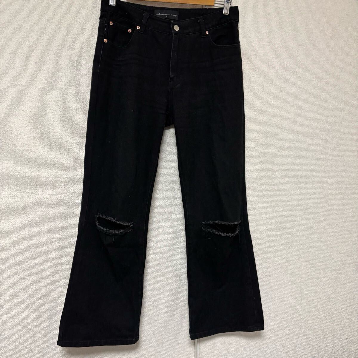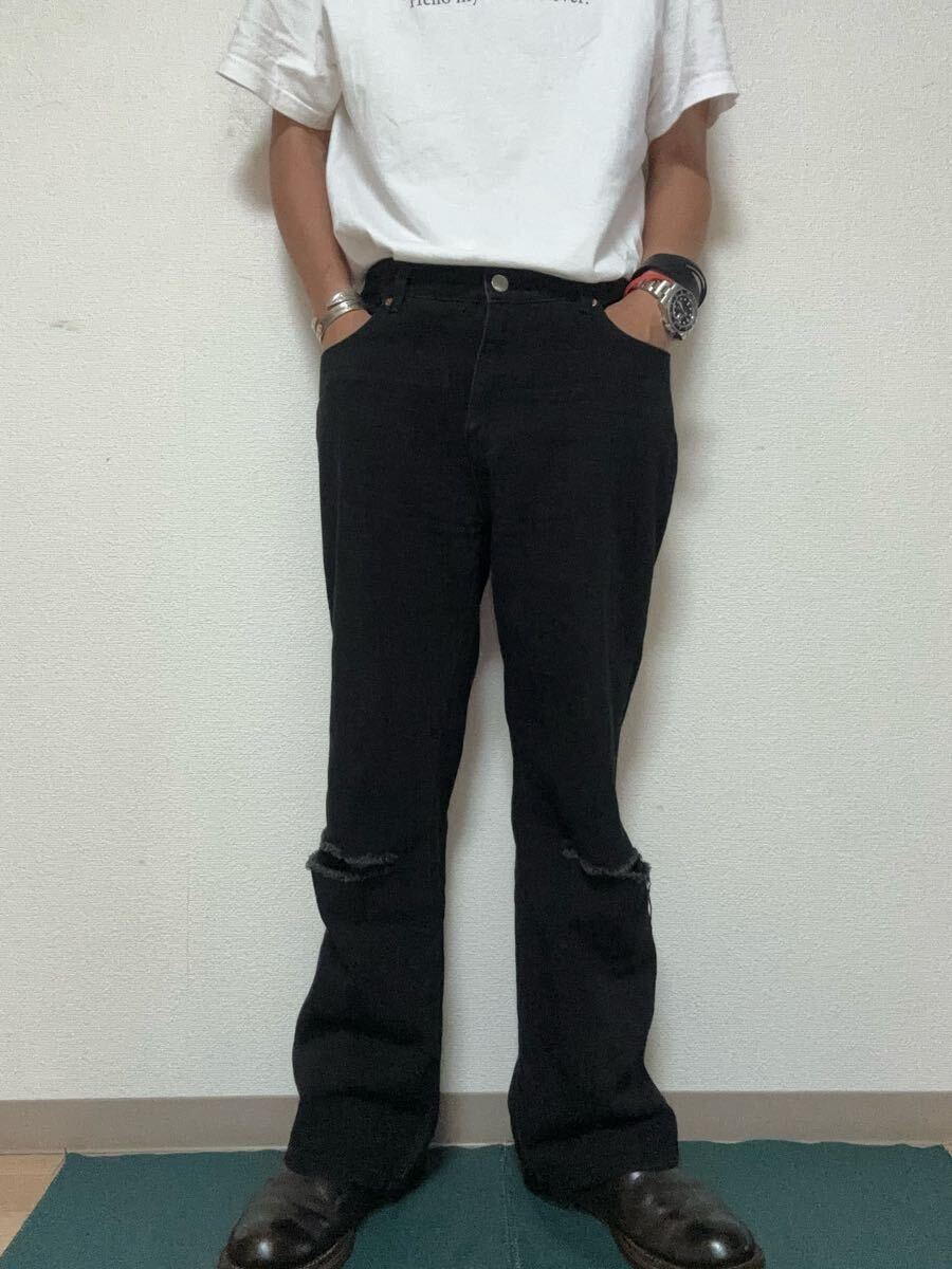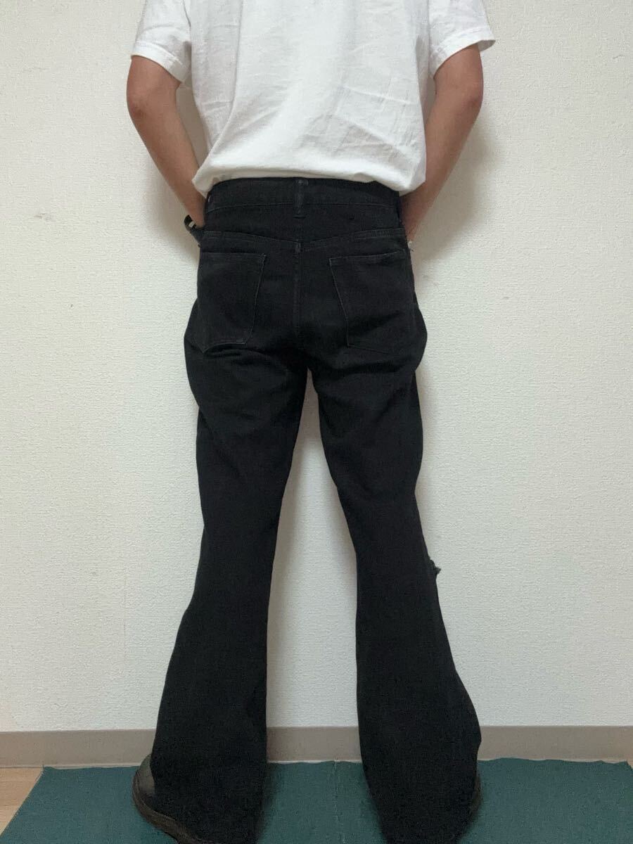 ブラックデニムで程よい太さのフレアシルエットでトレンド感あるブランドらしいクールな一枚です。