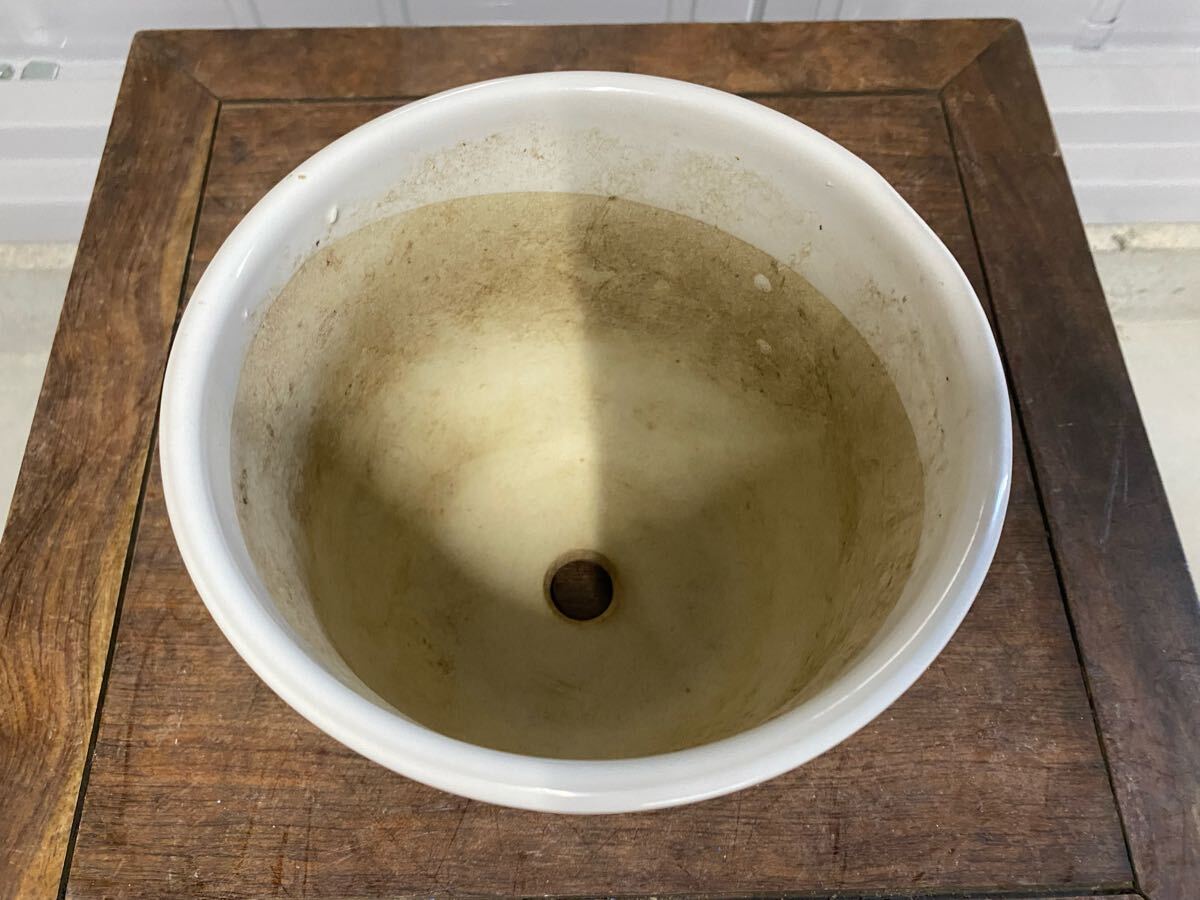 窯傷や黒い斑点があり、屋外で保管していたので水あかや土汚れが多少あります。詳しくは画像をご確認ください。