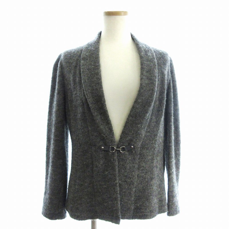 レリアン Leilian 美品 ニットジャケット ロロピアーナ 長袖 無地 アルパカ混 グレー 7 レディース