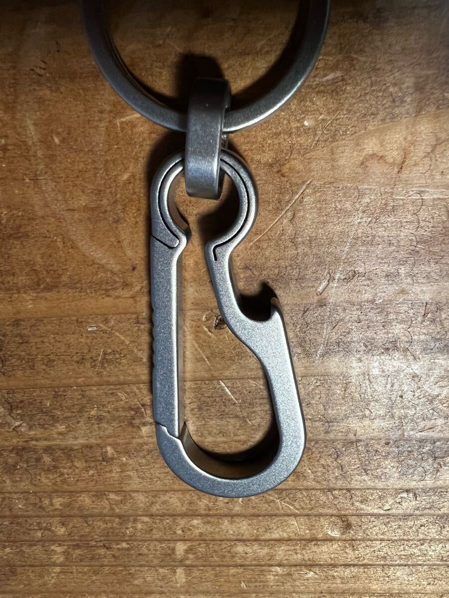 チタン製の軽くて丈夫、錆びないカラビナです。普段使い、ULハイキング、釣りなどに。栓抜き付きでビールなどの栓抜きができます。