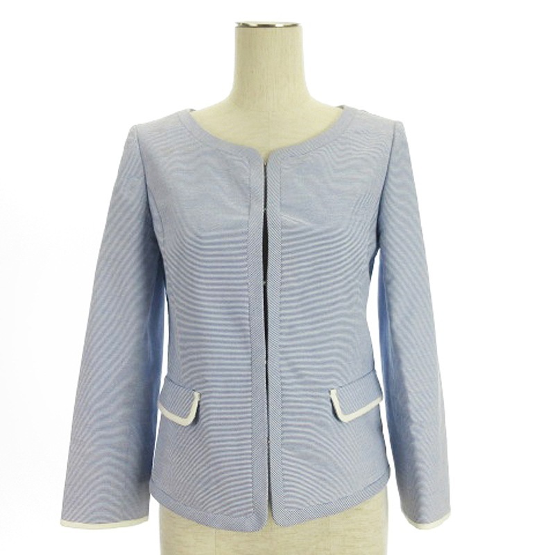 ノーリーズ Nolley's ノーカラー ジャケット ボーダー 36 ブルー 250508E レディース