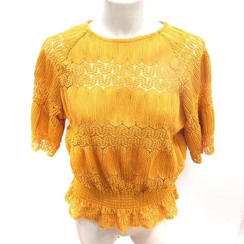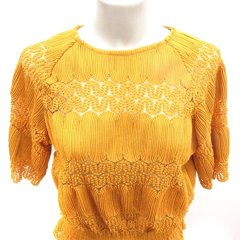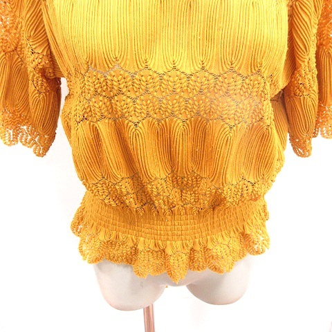セポ CEPO aaft ニット カットソー Uネック 五分袖 総柄 M マスタード /RT レディース