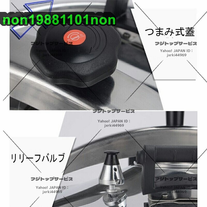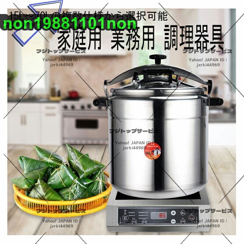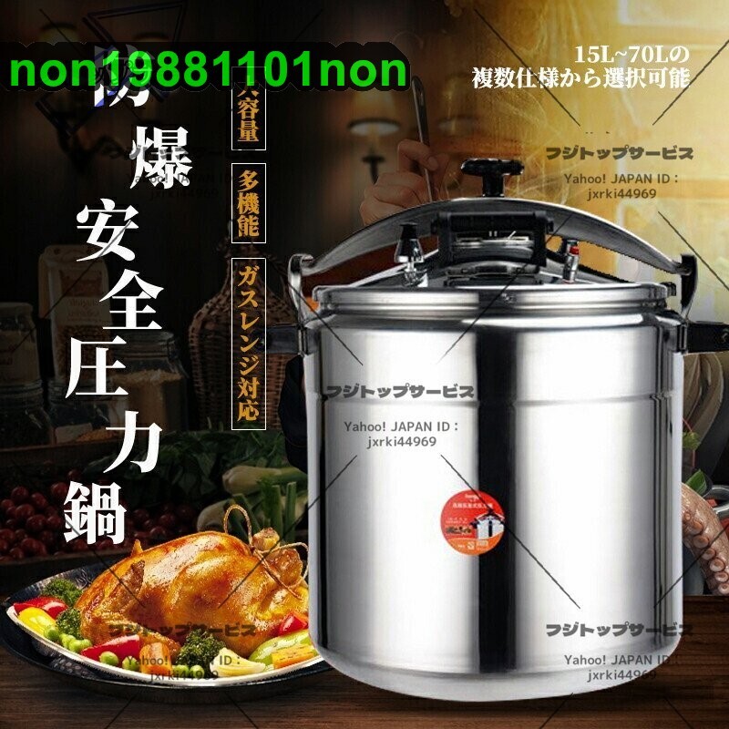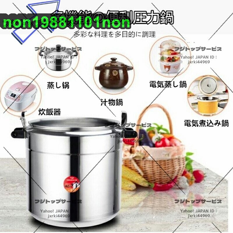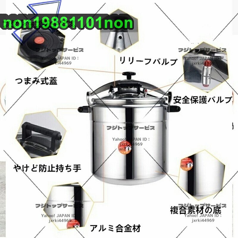 ●商品未使用 ★状態:新品未使用 ★【圧力鍋】業務用の大容量圧力鍋は、さまざまな場面でお使いいただけます。あなたのさまざまな料理に会うために ★【方法】開閉ロック機構によりフタを時計回りに回転させることができ、安定した気密性があり、操作が簡単で省力化できます。 ★【設計】湯沸かし防止ポットハンドルは、湯沸かしを効果的に防ぎ、取り扱いがより便利です。高品質のベークライトハンドルデザインにより、大面積の接触が可能です。 ★【変形しにくい】鍋底の高力レードルアルミは、脱型、変形のない、高速で均一な熱伝導、より高い熱効率、そしてより多くの省エネを実現する高圧スタンピングおよびフォーミング用に設計されています。 ★【鍋に】内釜はつや出し、つや消しです。ポット本体は直角設計で汚れがなくお手入れも簡単です。