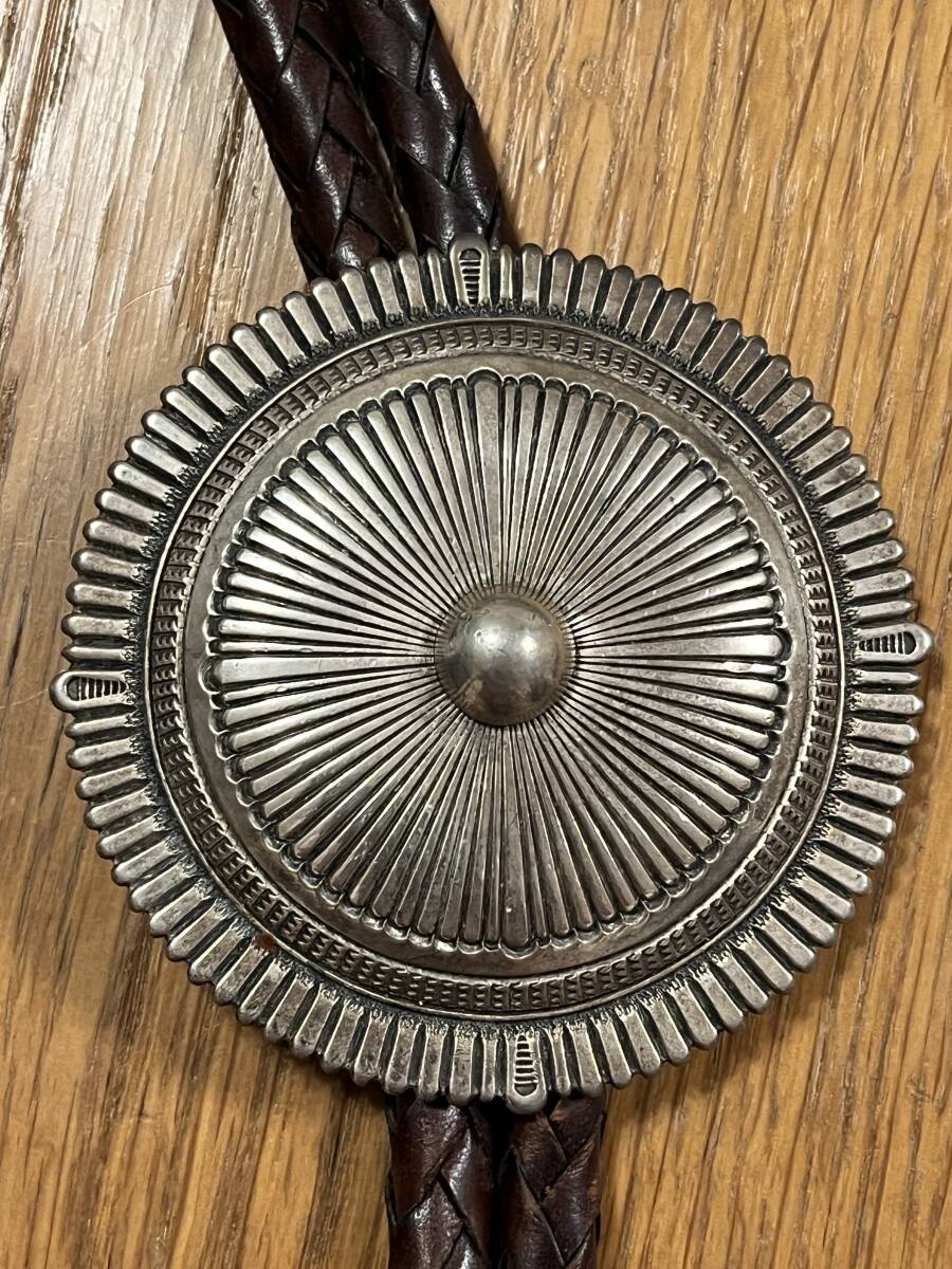 ナバホ族の人気作家 ロンベドニー Ron Bedonie のっスタンプワークのボロタイです。