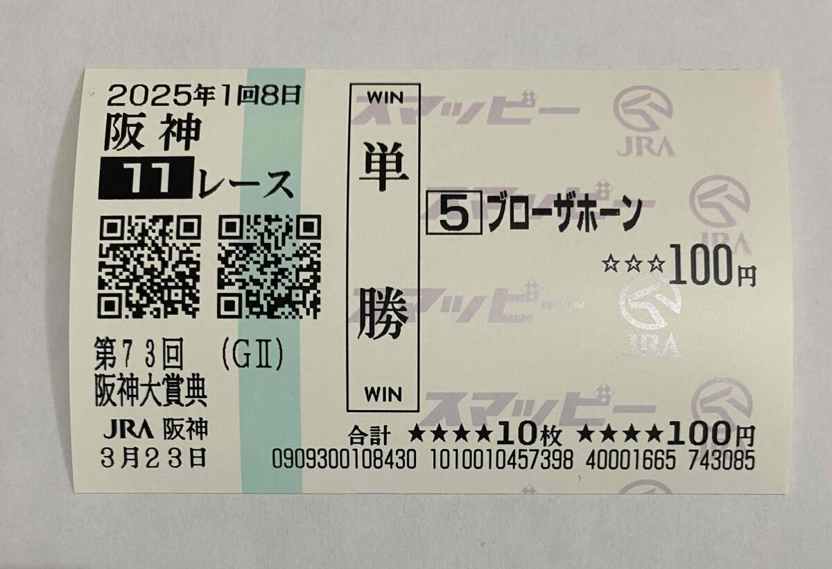 ブローザホーン 阪神大賞典 現地単勝馬券 スマッピー図柄 2025年