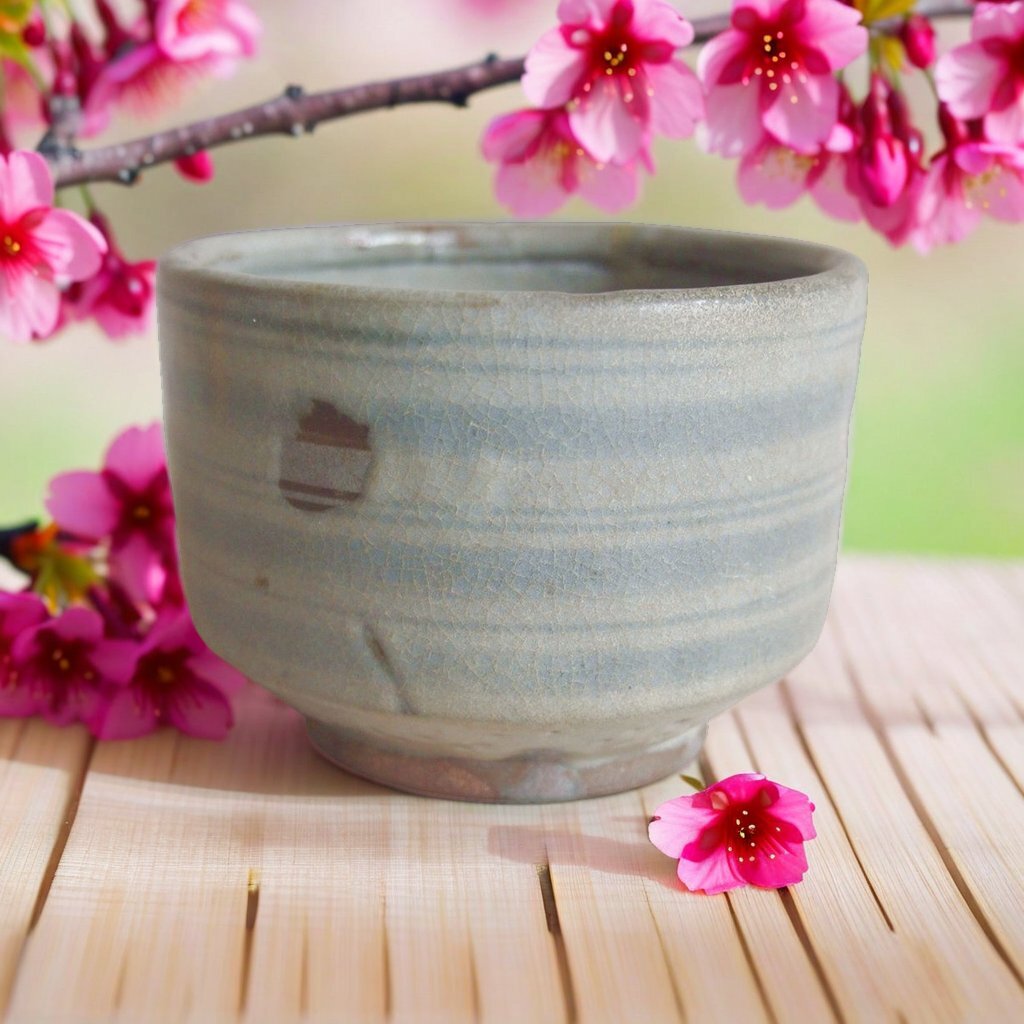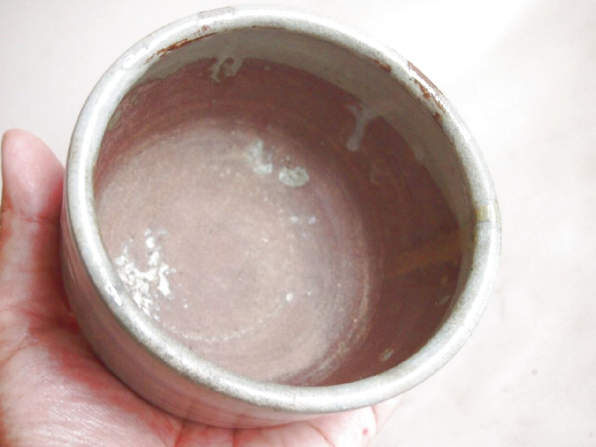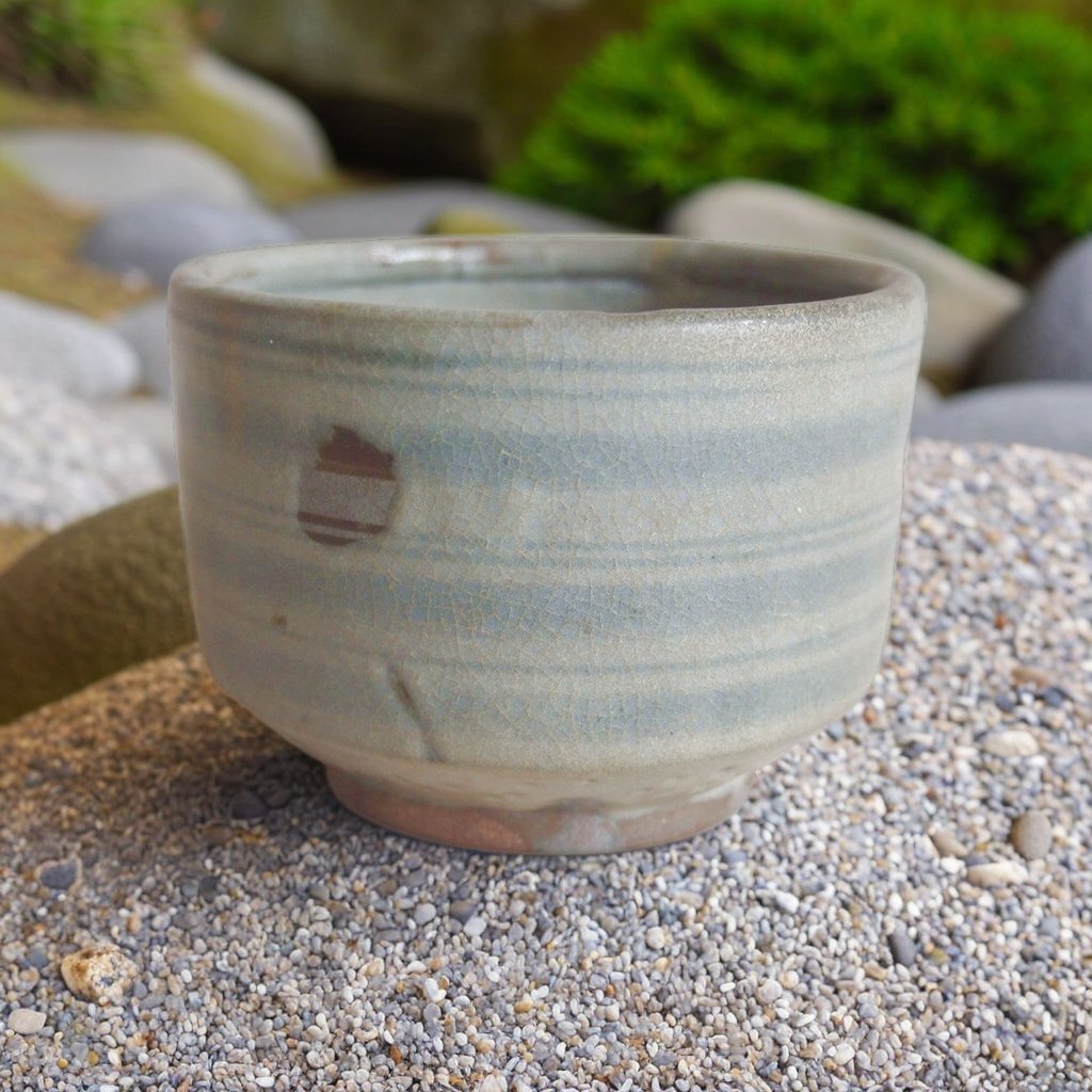 珍しい江戸時代(江戸初期) 木原窯 染付輪線文火入れ11cmです。 古伊万里から 唐津焼へ過渡期の 両者の味わいを兼ね備えた 歴史的にも 興味深い作品で 古伊万里の 赤絵でも稀に見られる 横に線が複数入った 珍しいデザインで モダンでシンプルな意匠は 現代アートにも引けを取りません。 偶発的に生じた胴の釉切れの 丸い部分の土見せが この器の面白味と、 個性を与えています。 古雅な雰囲気を持っており 火入れとしてではなく 剣山を仕込んで花器として も活けた草花を引き立ててくれます★ 敷布も付属します。 木原窯は 変形や傷物、 残欠が多いですが そんな中、口縁から側面に 細いタチ、 窯傷の直しがある程度と 状態も良好です。 古い品ですので 画像もご確認の上 ご検討ください。 ※茶筅(高さ12cm)は サイズ確認のサンプルです。 ★サイズ(約寸) 直径11cm 高さ7.5cm 高台6.5cm 重量346gほど 付属品 敷布 素敵なひと時を♪ |