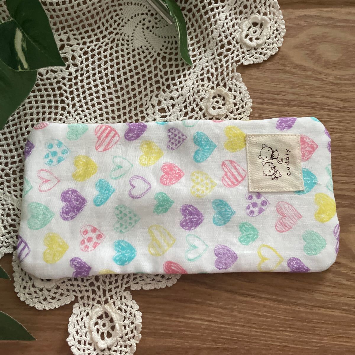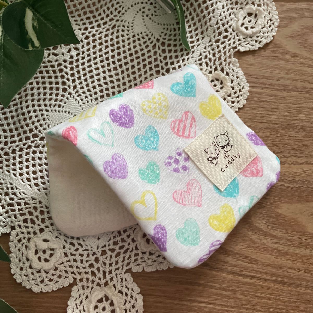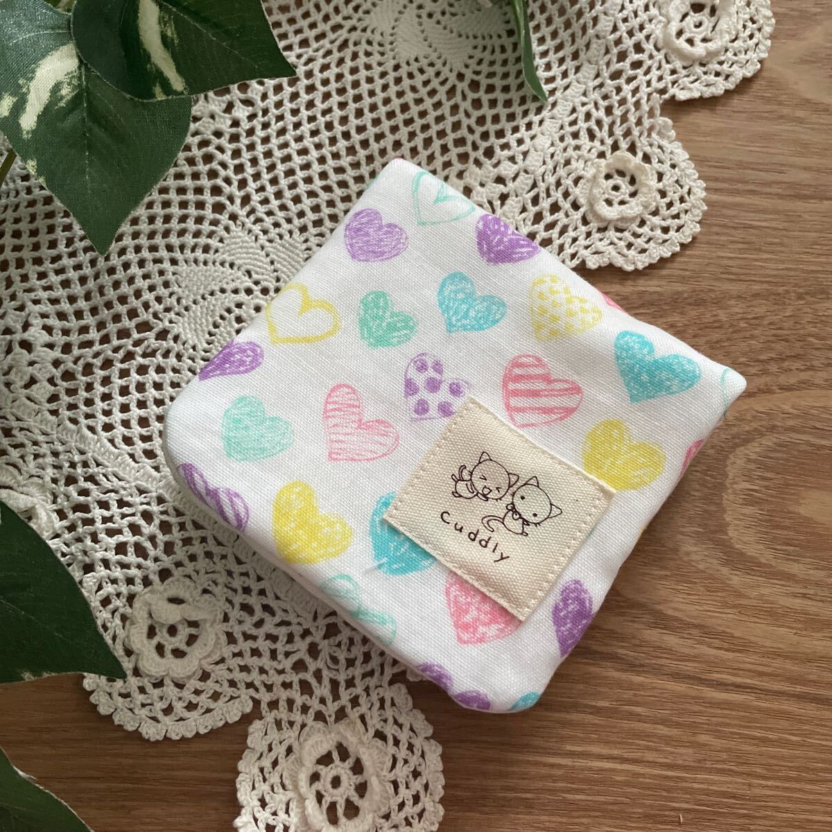 620 ハンドメイド ハンカチ ハーフサイズ ハート カラフル ねこタグ