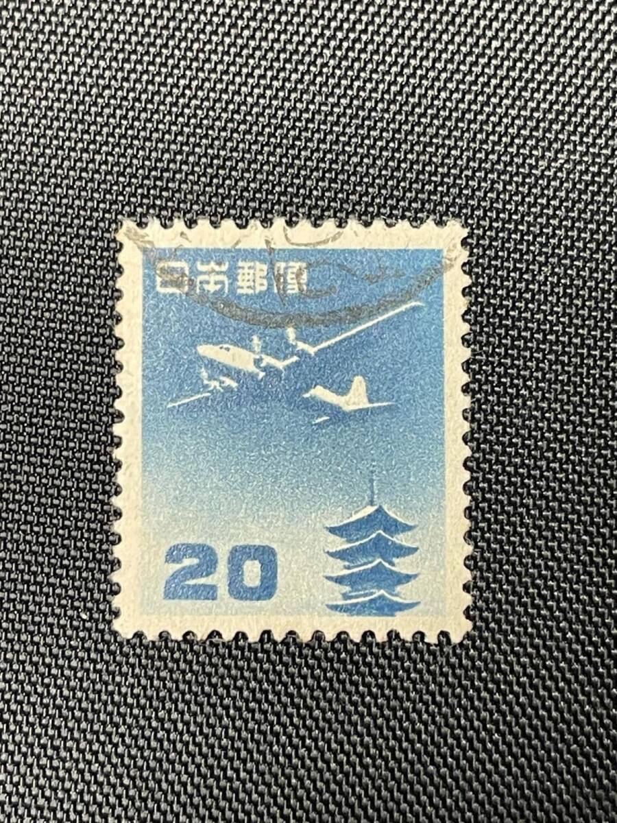 【希少】航空機と五重塔 20円 普通切手(1951年) 使用済/美品 即決あり(管理番号st3929)