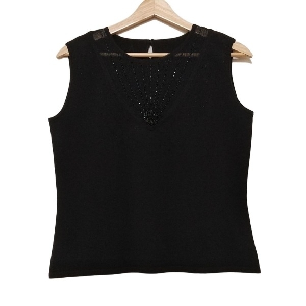 ロッサ ROSSA ノースリーブセーター/ニット サイズ44 L - 黒 レディース クルーネック/ビーズ 美品 トップス