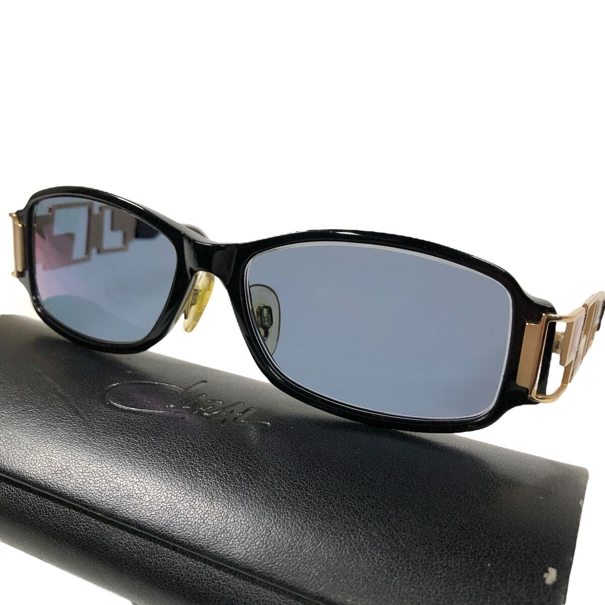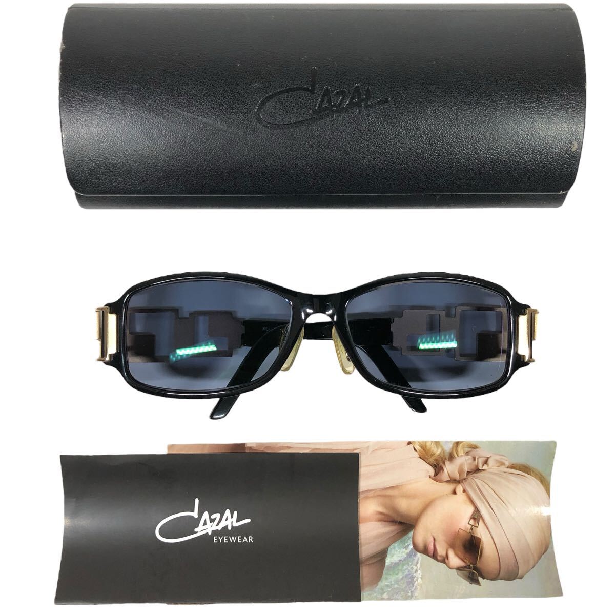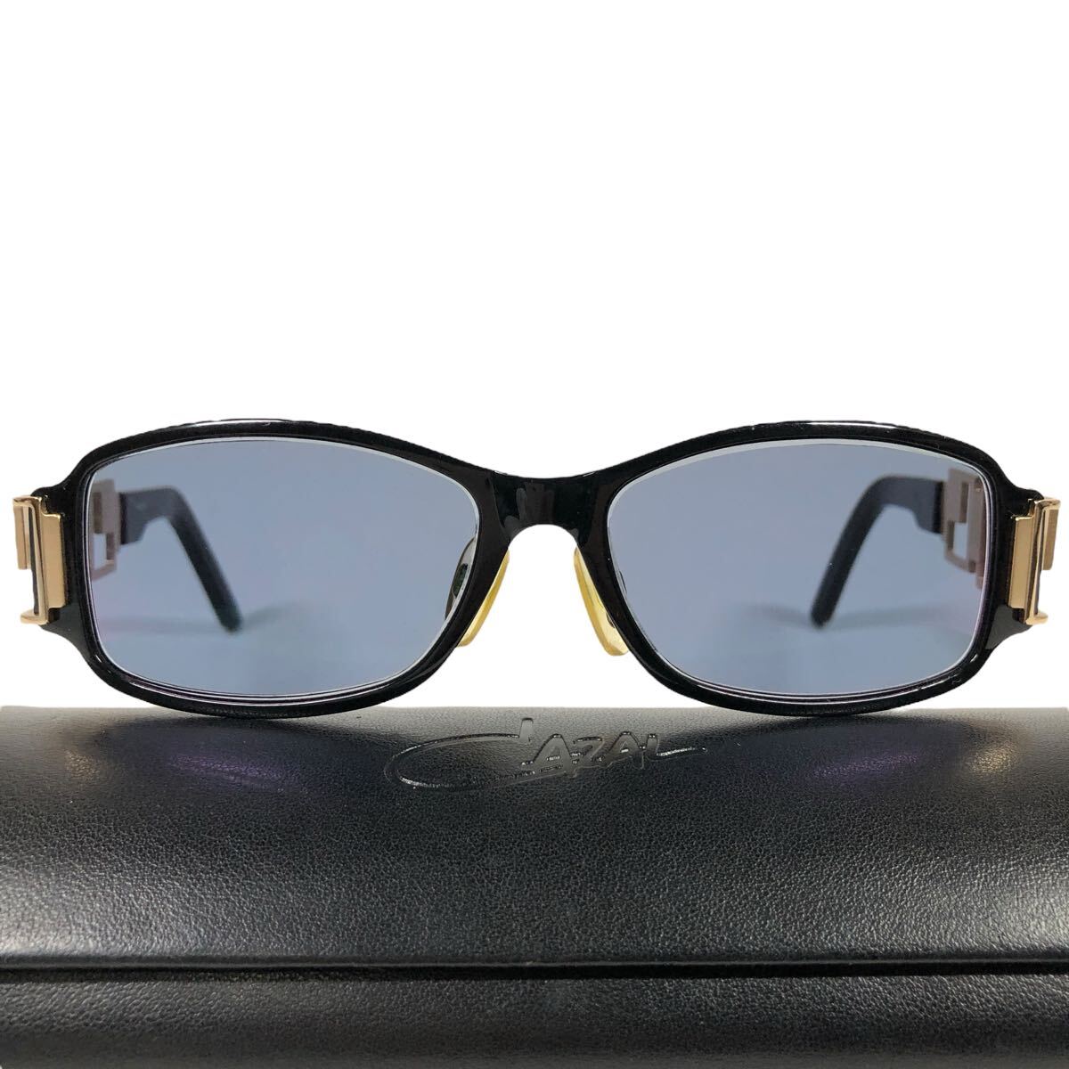 【カザール】本物 CAZAL サングラス ロゴモチーフ MOD 879 ブルーグレー色系×黒×ゴールド色系 度入 メンズ レディース ドイツ製 ケース付