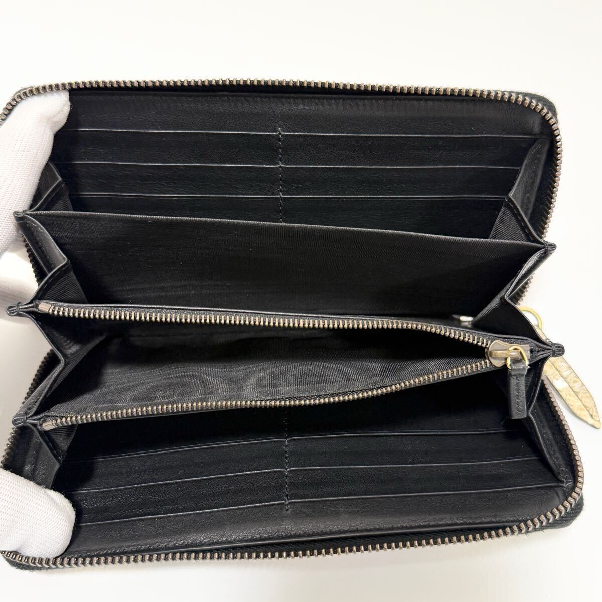 カードポケットやファスナー付き小銭入れを備えた使いやすいラウンドジップタイプ。