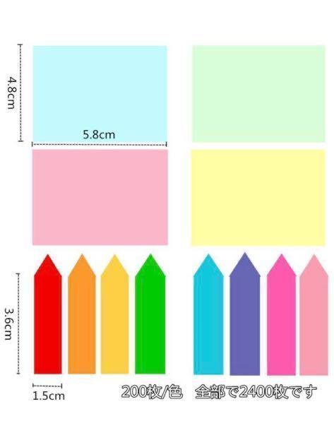 カラフル 付箋 強粘着パワー 12冊2400枚セット 収納ケース付