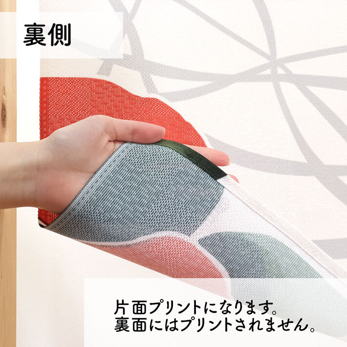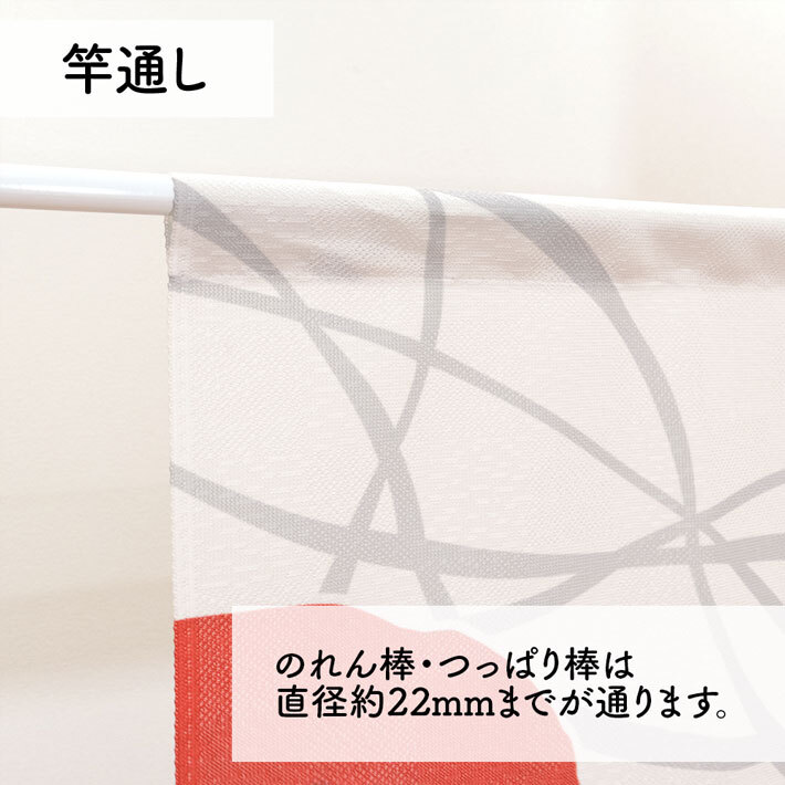 ■割れ目のないのれんです。真ん中のカットラインに沿ってハサミで切り込みを入れることもできます。竿通し部分まで切らないようにご注意ください。