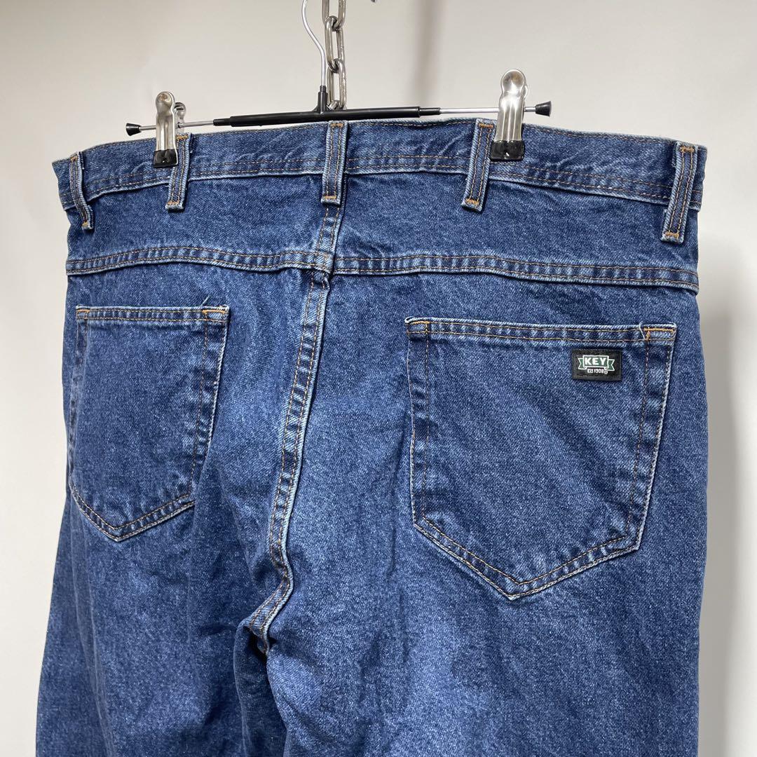 KEY W38L34 ストレートワイド デニムパンツ 濃紺 メンズL