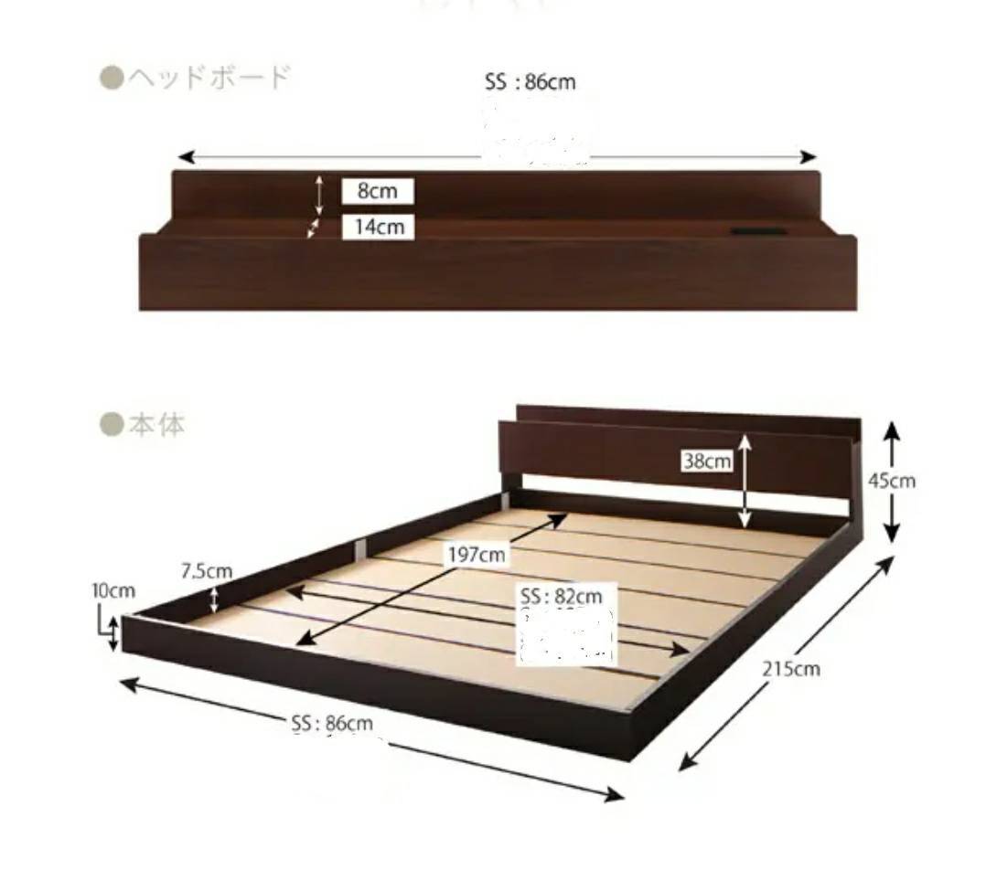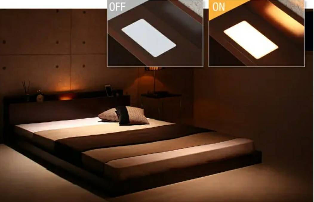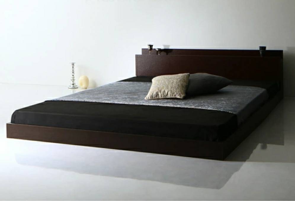 フレームのみ【アウトレット品】ダブル 棚コンセント付き シンプルモダンフロアベッド ダークブラウン