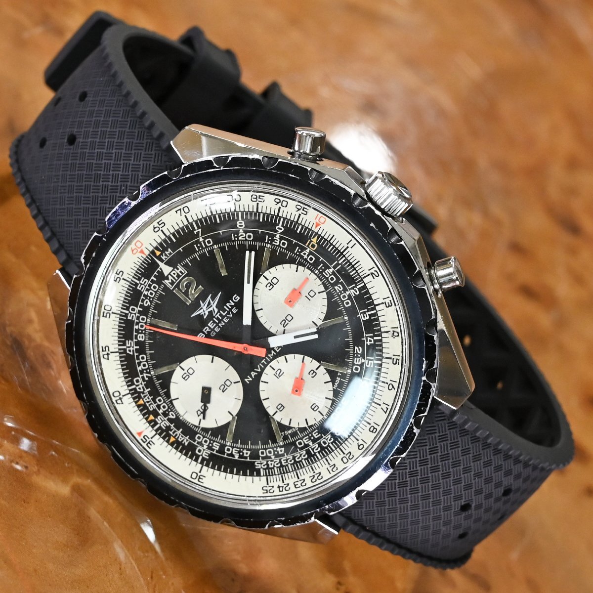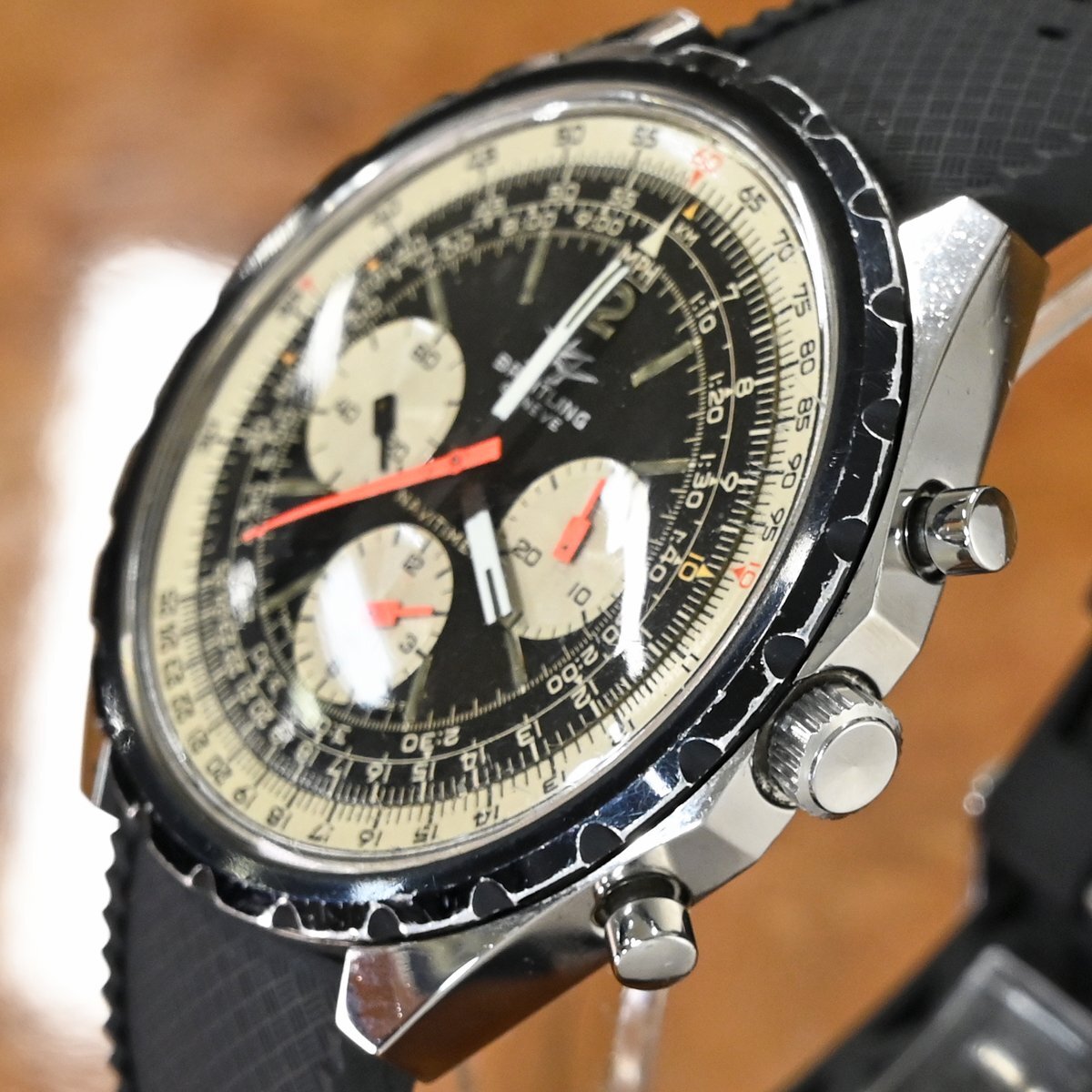 ブライトリングの11525 オールドナビタイマーです。 70年代テイスト溢れるこの年代特有のケースデザインやブランドマークなどは、お好きな方にはたまらないのではないでしょうか。 ムーブメントにはヴィーナス178を搭載。 長く使われたこのムーブメントは、ピラーホイールを採用したマニア好みのムーブメントです。 市場流通量の圧倒的に少ないモデルなのでお探しの方も非常に多いかと思います。 ※基本動作確認済。 |
