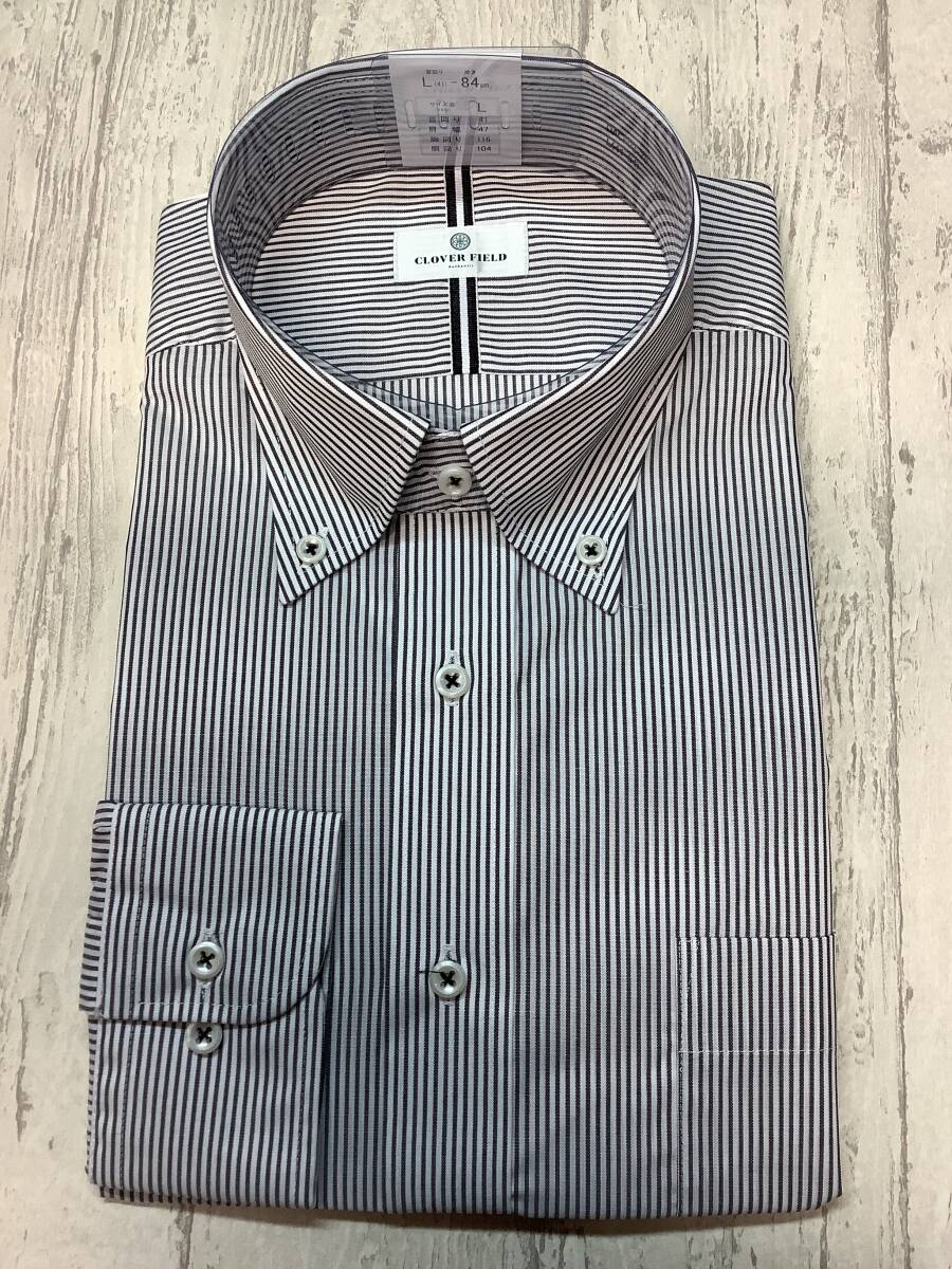 ★41-84 表示 長袖Lサイズ ストライプ柄 ★綿ポリドレスシャツ 形態安定 ストレッチ ボタンダウン