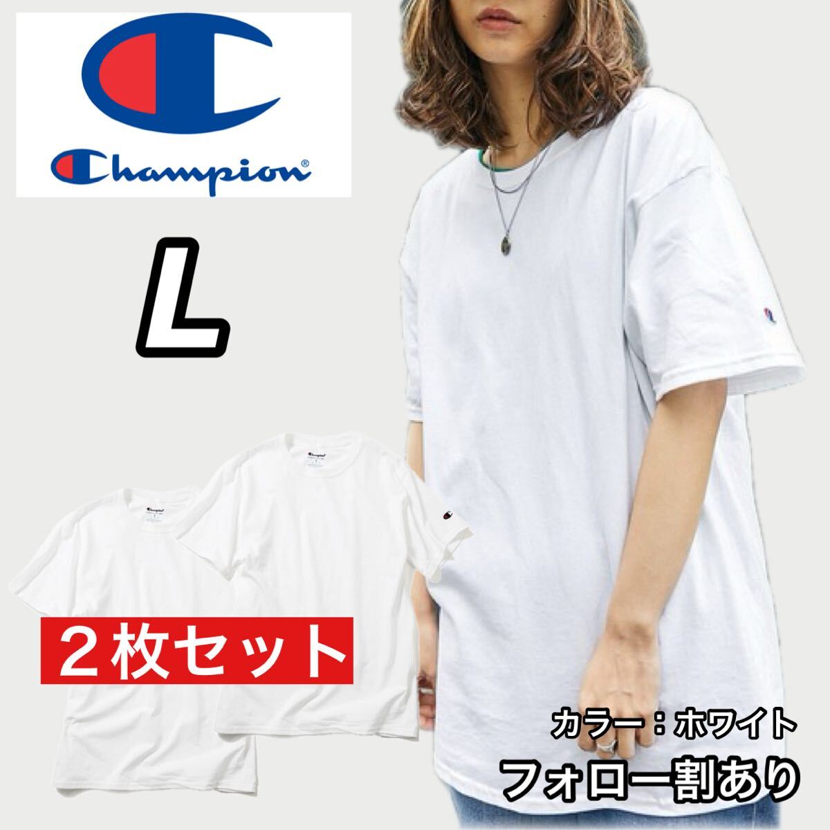 新品未使用 Champion チャンピオン 無地 半袖Tシャツ 白 ホワイト 2枚セット Lサイズ メンズレディース ストリートウェア クルーネック