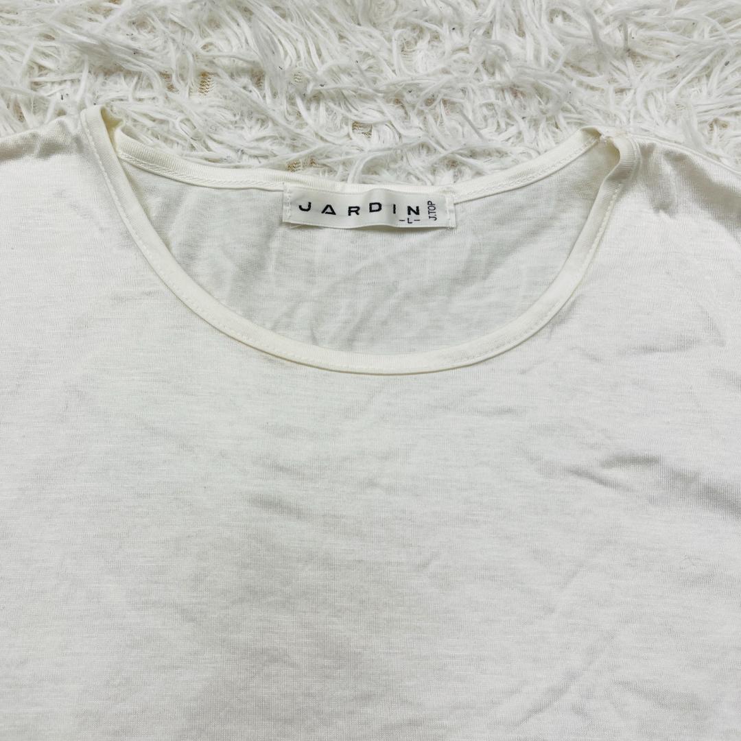 【2070】JARDIN 白 ホワイト 半袖 トップス プルオーバー 無地 シンプル 日本製 クルーネック カジュアル カットソー 普段着