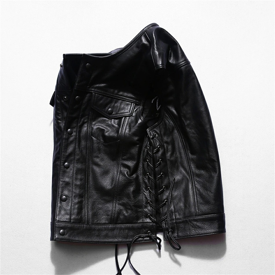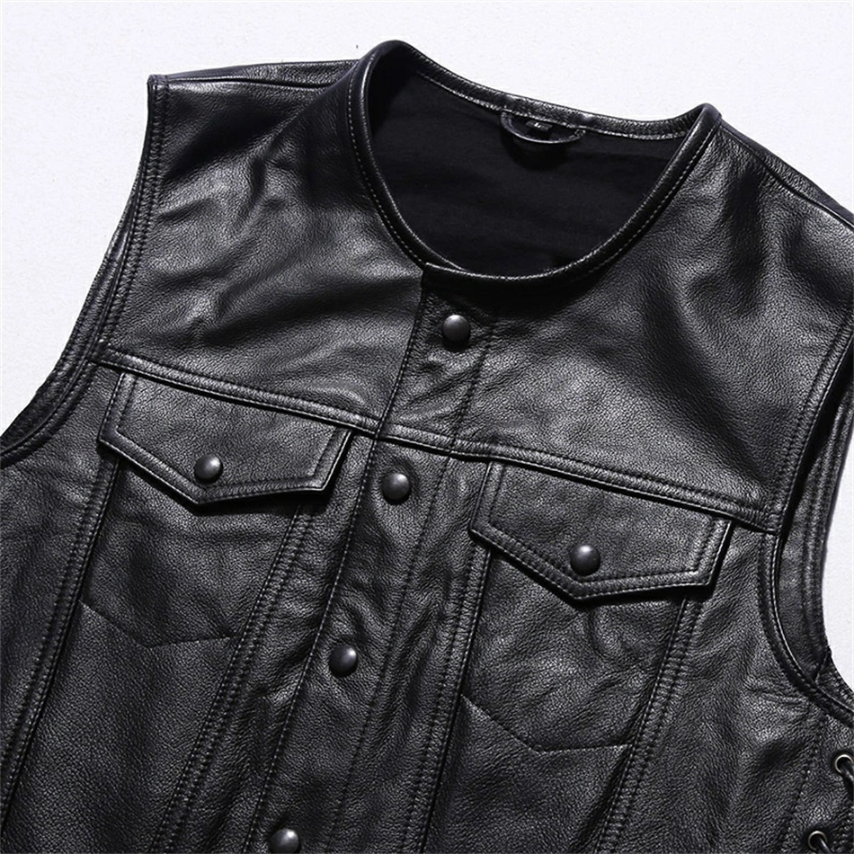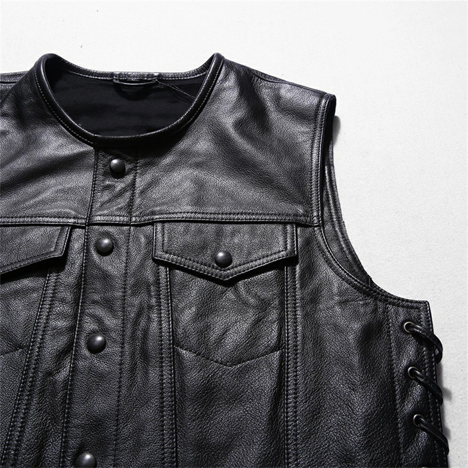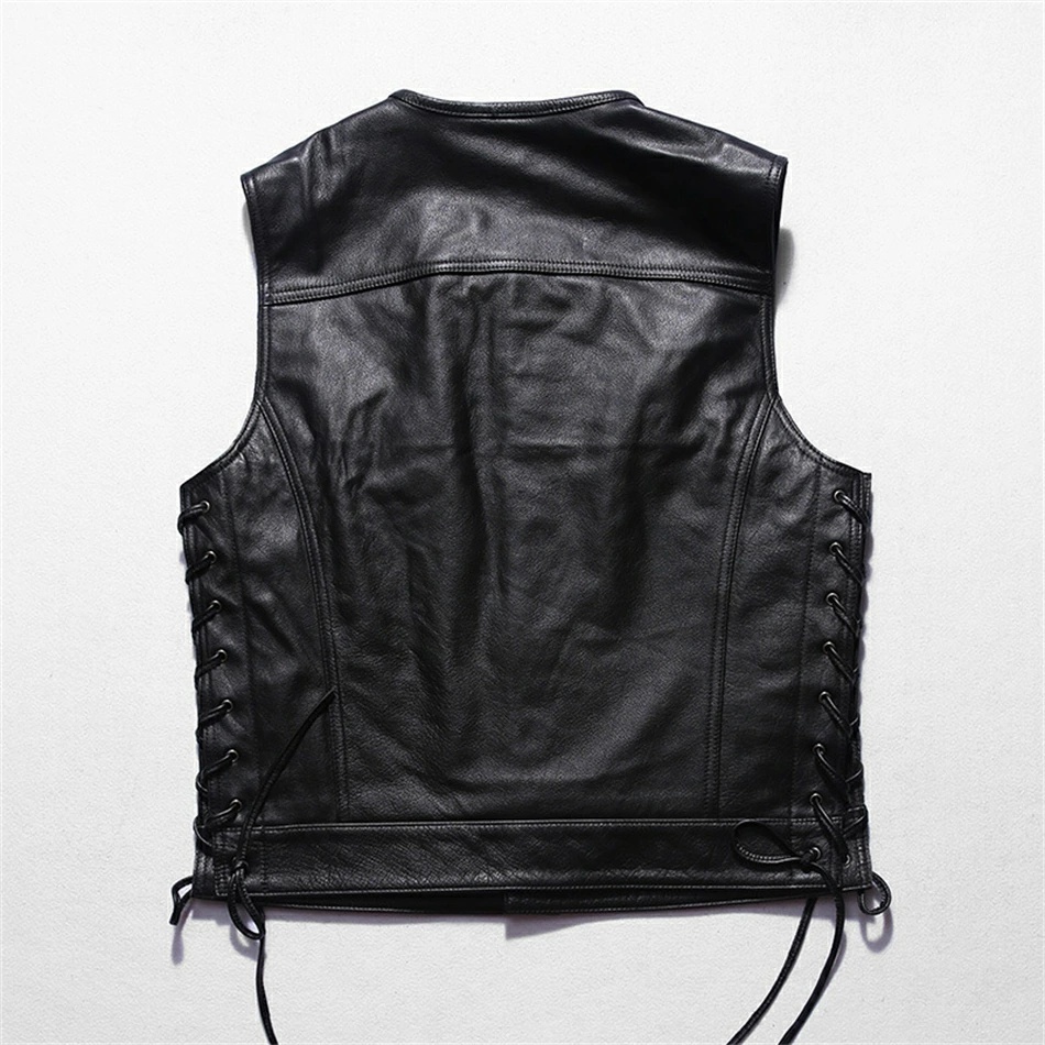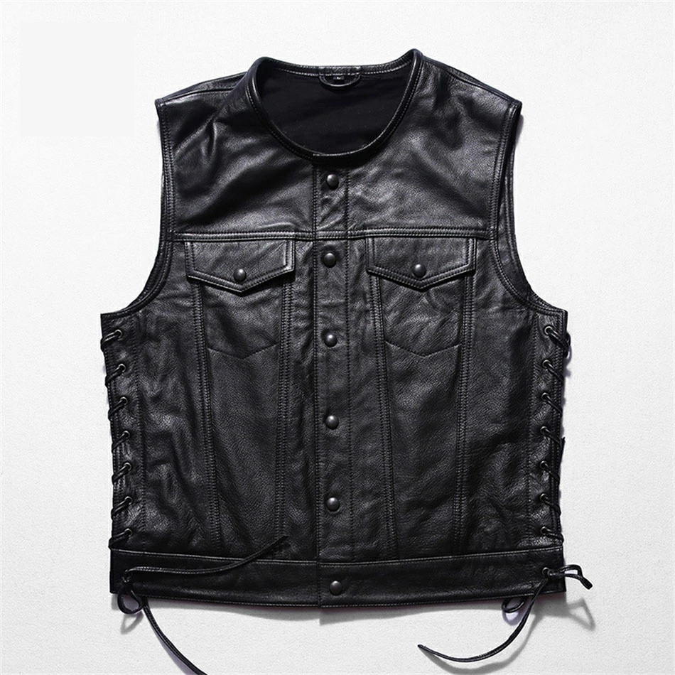 ★新品★メンズ LWMZ20-Mサイズ ブラック 黒 レザーベスト パンク風 ライダースベスト 牛革バイクベスト バイクウェア レザー 本革