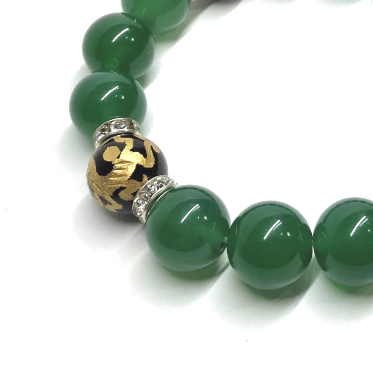 こちらは、四神獣金彫オニキと緑瑪瑙を組み合わせたパワーストーンブレスレットです。四神獣は、中国の伝説で4つの方向(東西南北)を守護する神聖な神。四神獣、厄災から身を守り、多くの運気を呼び込むと言われております。石大きさは程よくインパクトのある12mm玉で内周 約17cmです。 数に限りがございますので気になる方はお早めにどうぞ。