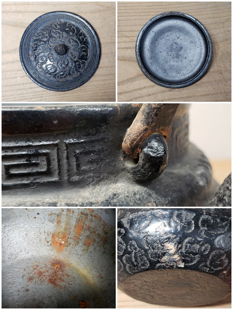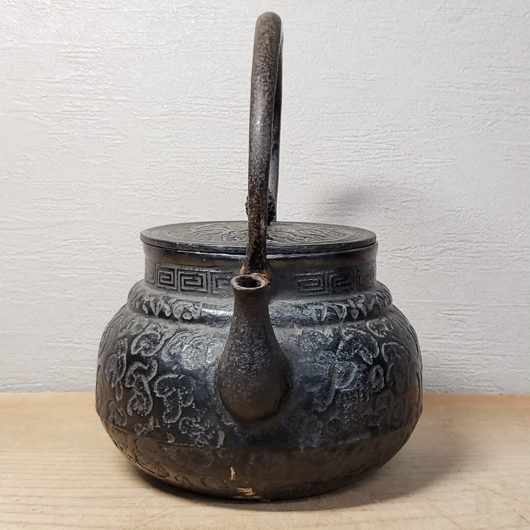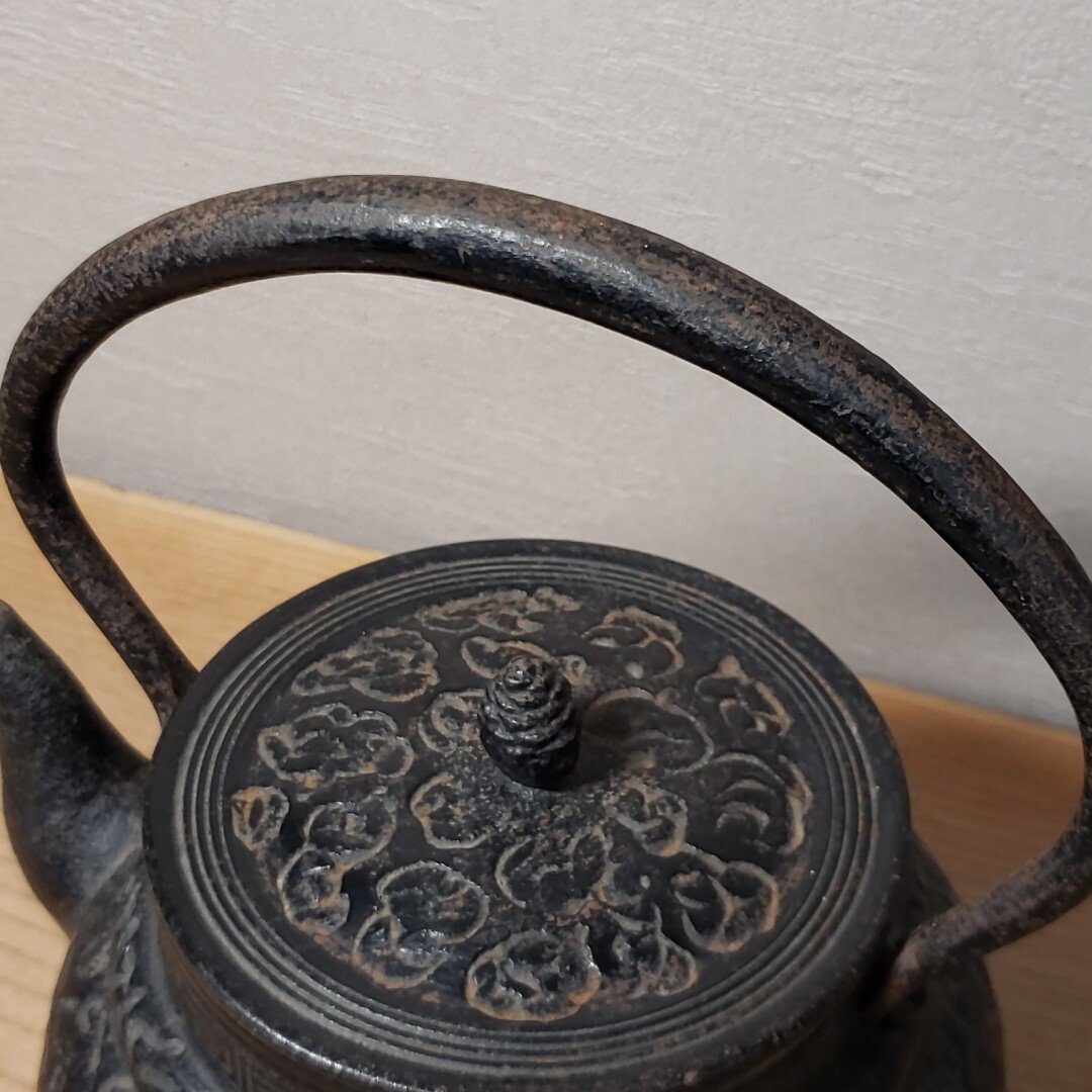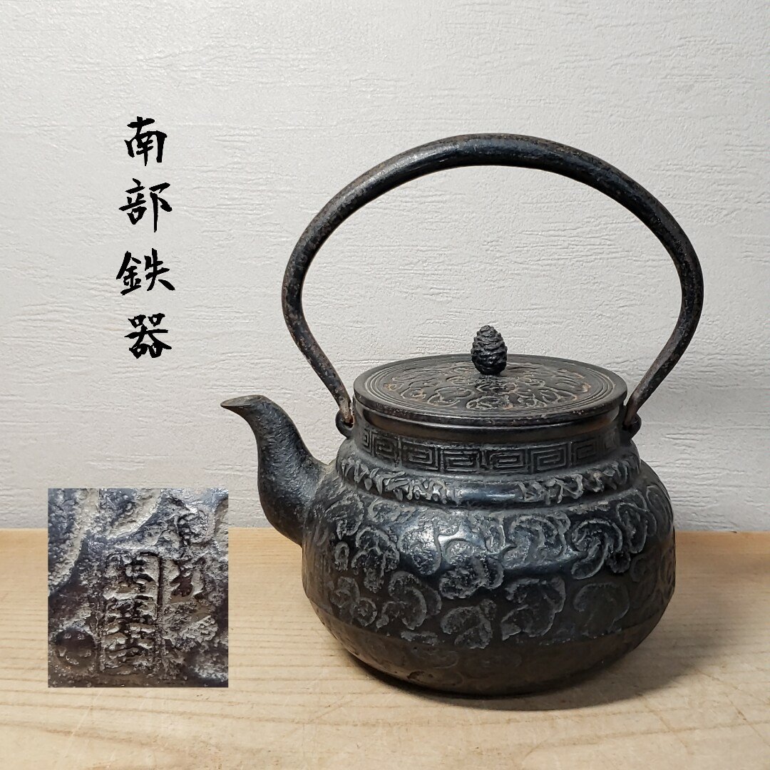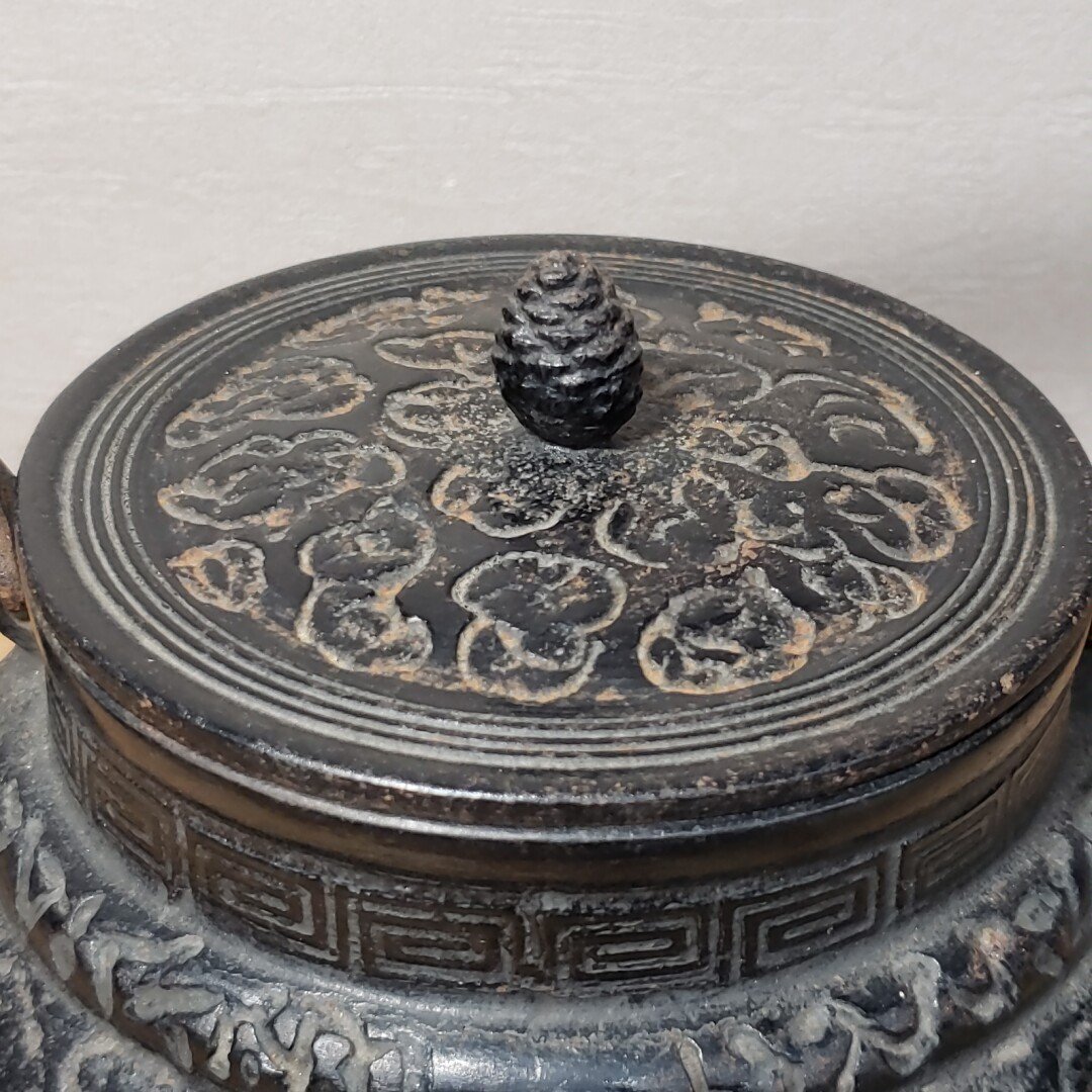 商品名 | 鉄瓶 南部鉄器 芳栄堂? 約1338g 水漏れなし 松ぼっくり 雷紋 在銘 鉄器 古鉄 急須 水差し 湯沸かし 時代物 骨董 旧家 蔵出し | |||||||||||||||||||||||||
