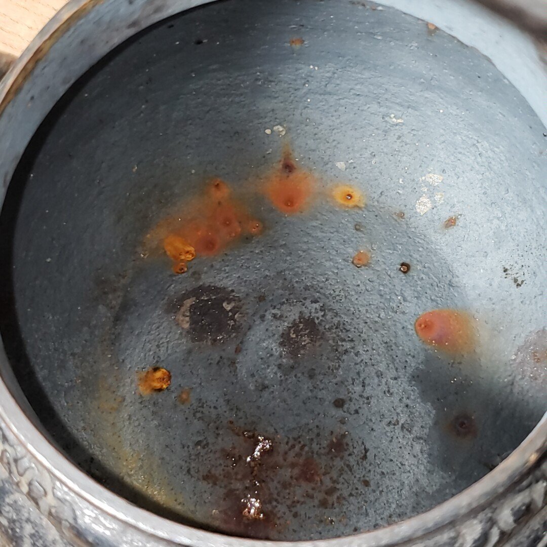 蓋摘まみに松ぼっくりが付いています。銘がありますが芳栄堂?でしょうかはっきりとは見えません。 ご理解の上ご検討ください。
