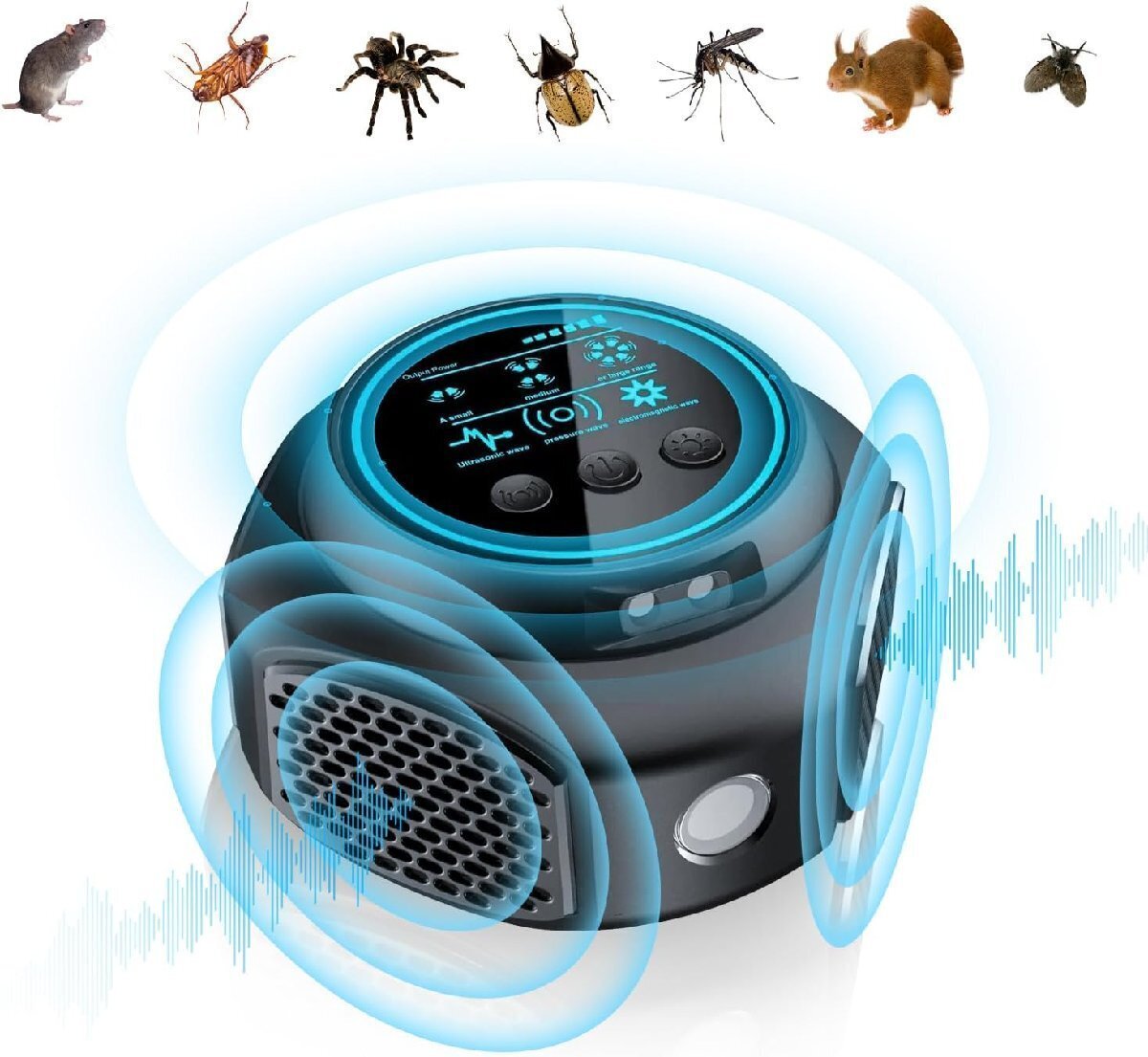 【360°あらゆる害虫を駆除します】4つの超音波スピーカーが360度放射し、昼夜を問わずネズミやゴキブリなどの害虫を駆除します。製品から発せられる高出力の超音波や電磁波のパルスが、マウスの聴覚系を阻害して刺激し、抵抗しにくい状態を保つことで駆除効果をもたらします。(注意:この製品はネズミ、ゴキブリ、蚊、その他の害虫を駆除するために設計されており、殺虫には適していません。なお、ネズミの駆除は継続的な工程であり、顕著な効果は2~4周間の使用後のみで現れます)