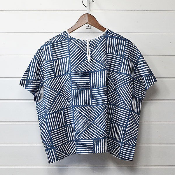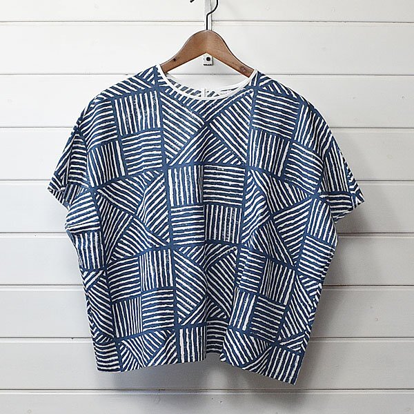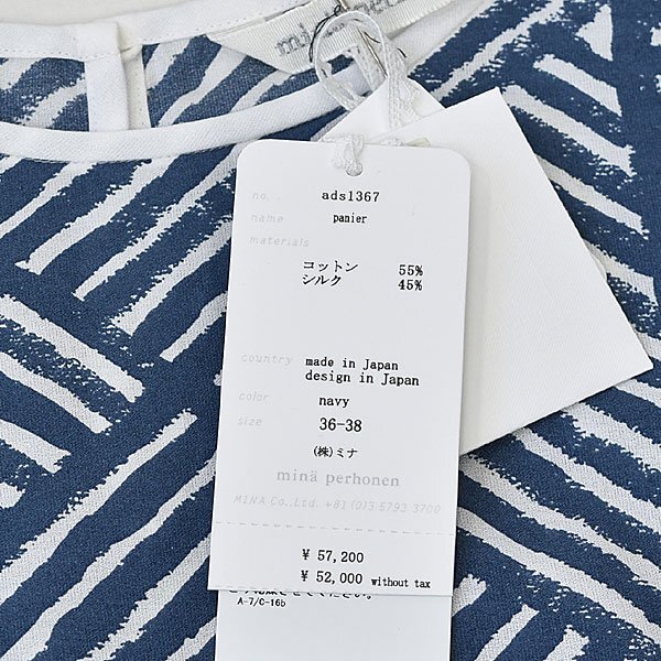 新品 mina perhonen panier 25SS フレンチスリーブブラウス ADS1367 36-38 ネイビー ミナペルホネン パニエ コットンシルク |