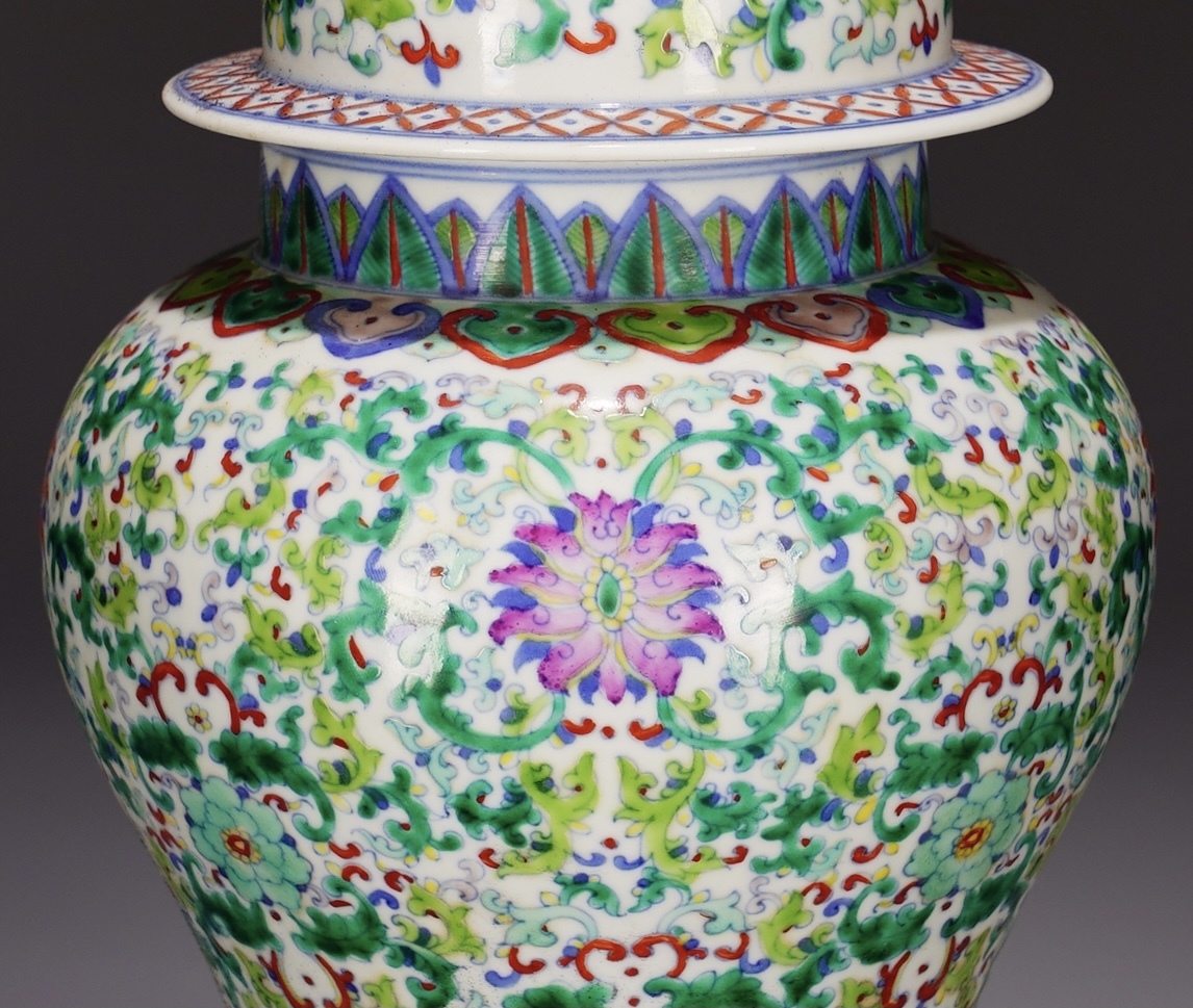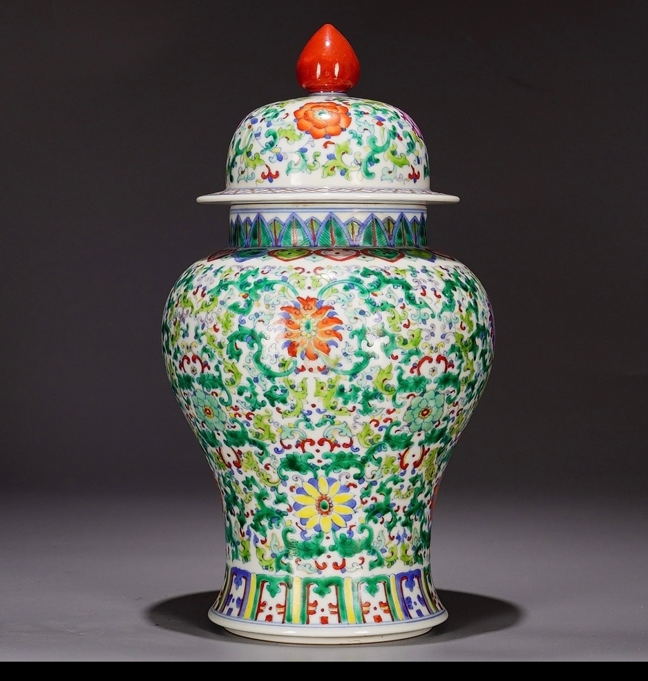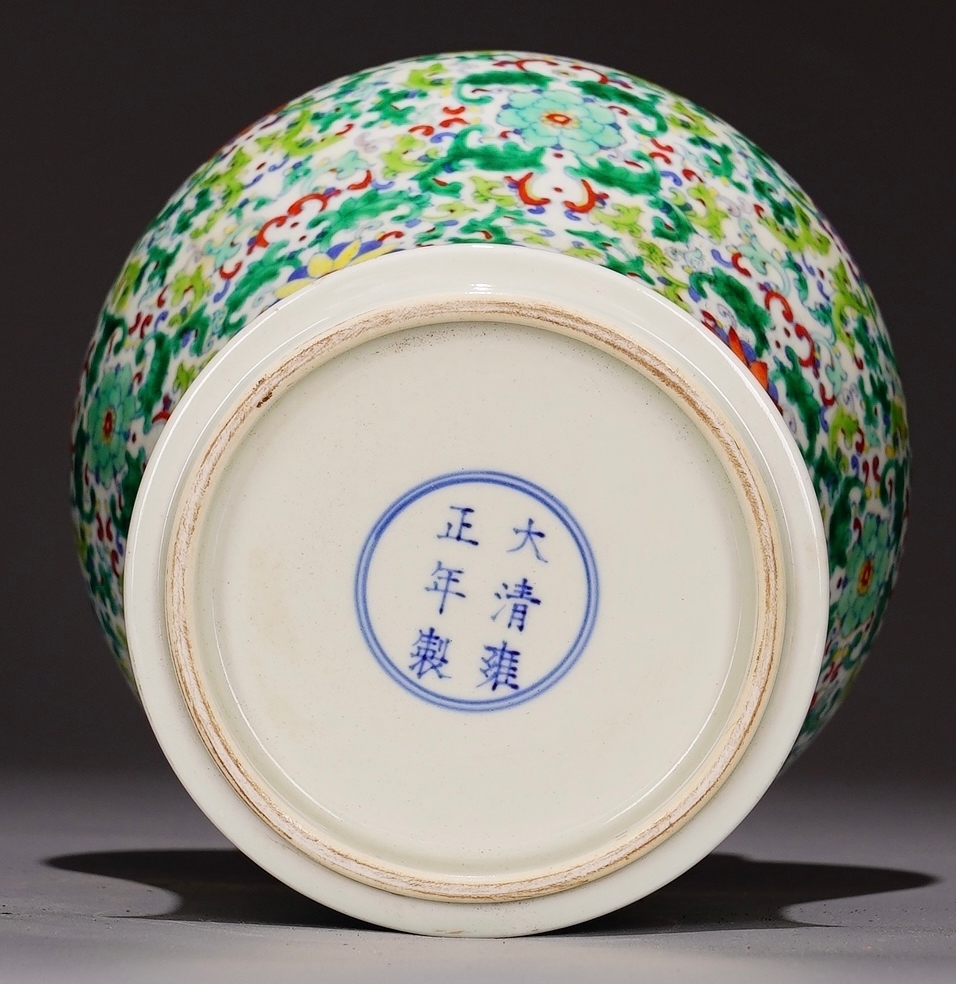 *珍品旧蔵* 大清 雍正年制 青花闘彩絡枝蓮紋 将軍缶 陶芸 古陶磁器 中国磁器 極細工 唐物 中国古玩 骨董品 古美味 H45