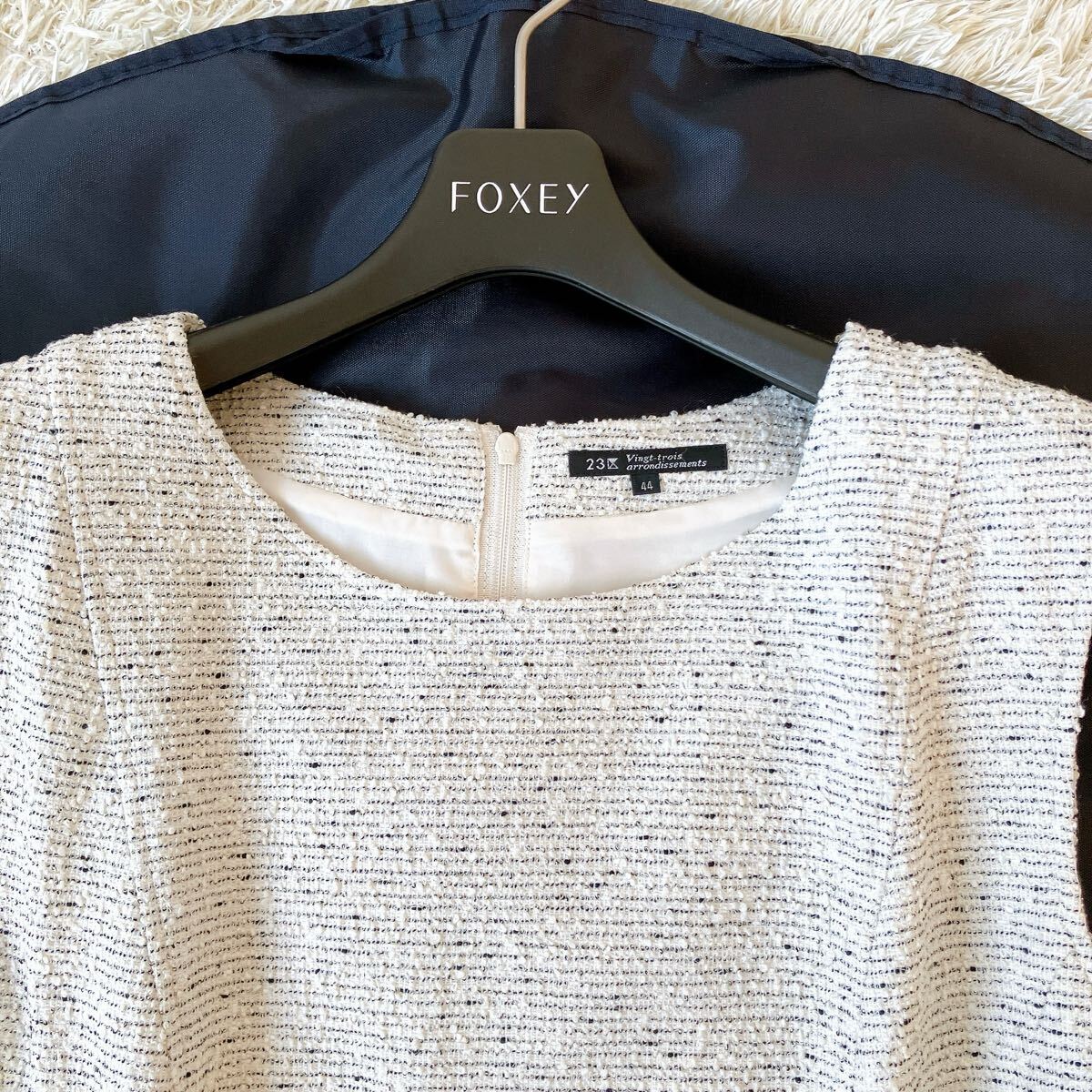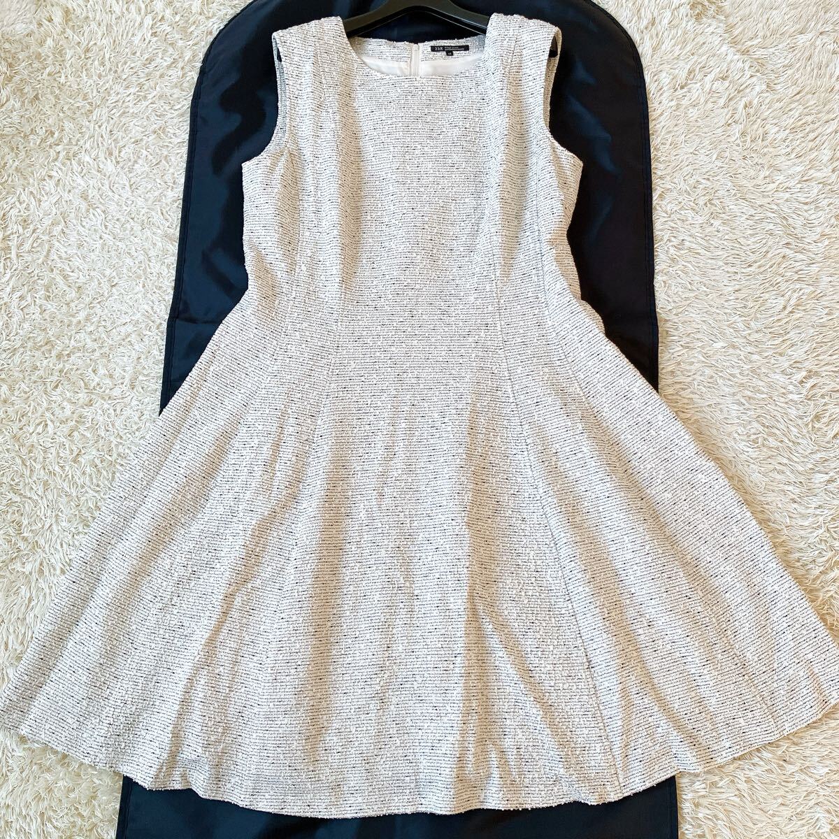 ○アイテム 23区 ニジュウサンク ツイードワンピース 大きいサイズ44 XL ノースリーブ アイボリー ひざ丈 フレア ツイード