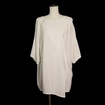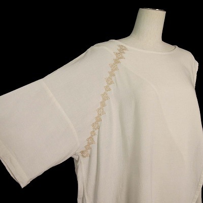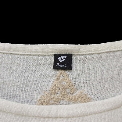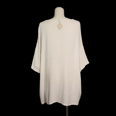 アミナ Amina カットソー チュニック 刺繍 七分袖 オフホワイト レディース